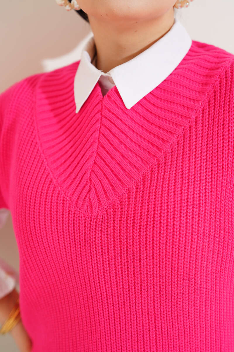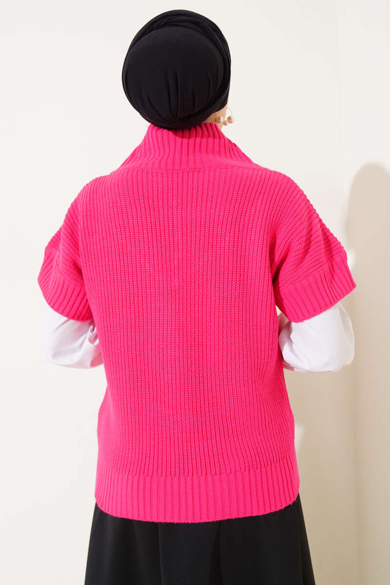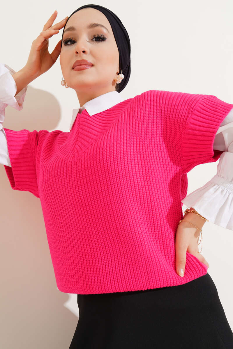 Saç Örgü Fırfırlı Triko Body Fuşya