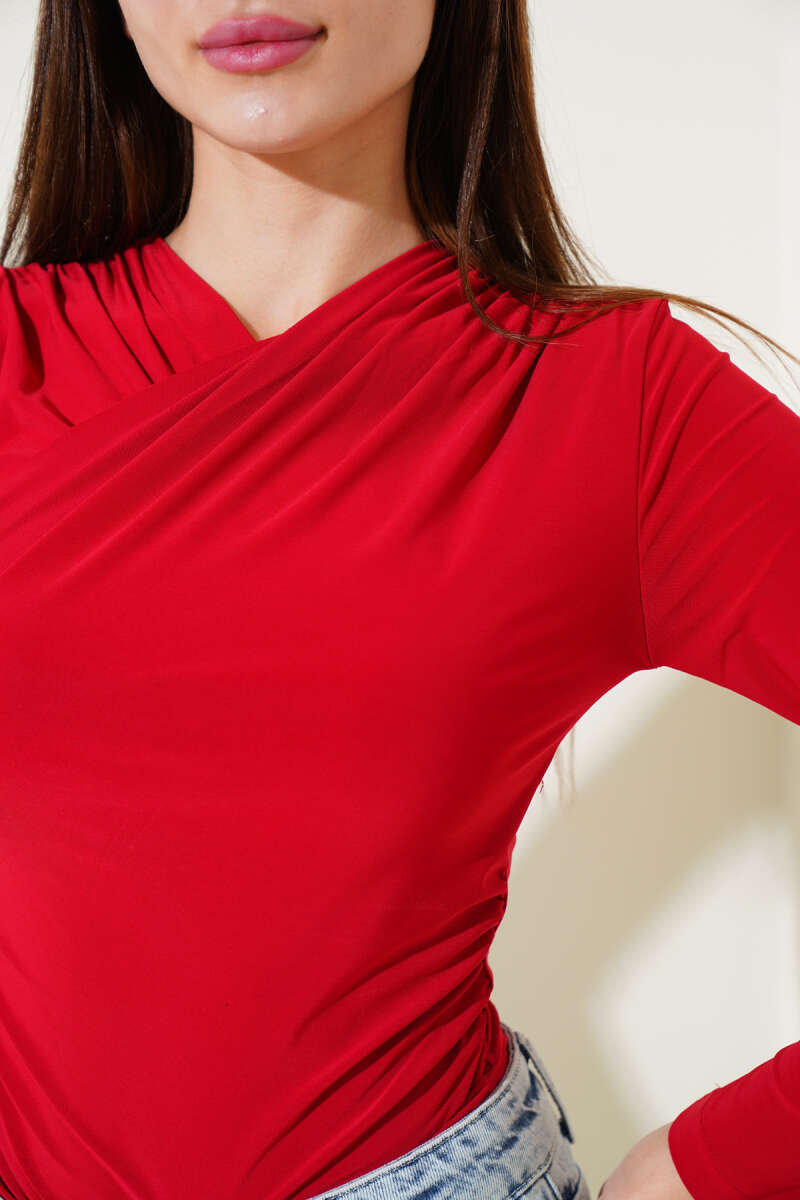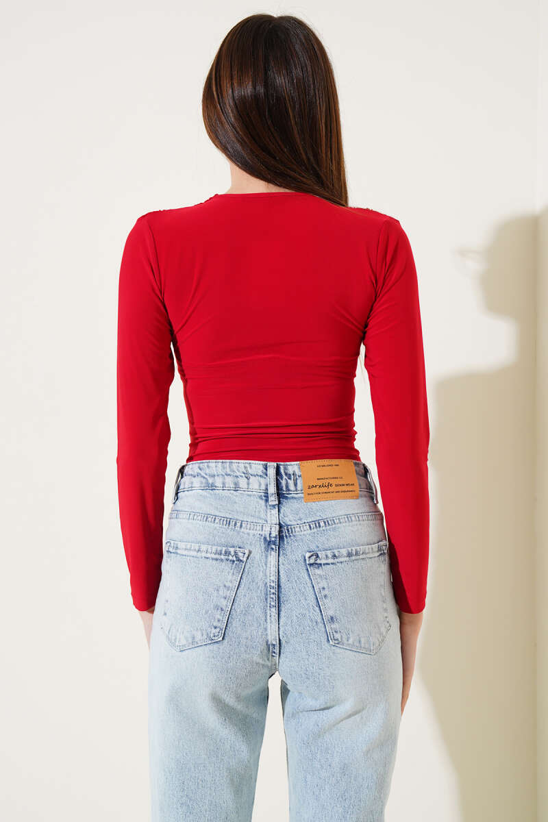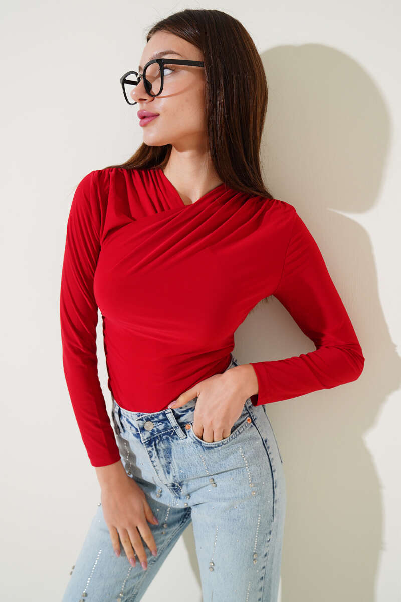V Yaka Uzun Kol Bluz Kırmızı