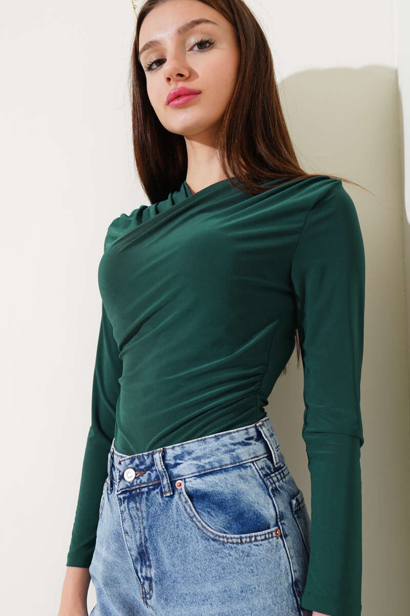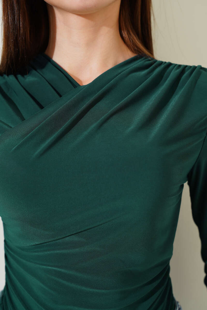 Mini Taşlı Kayık Yaka Bluz Siyah