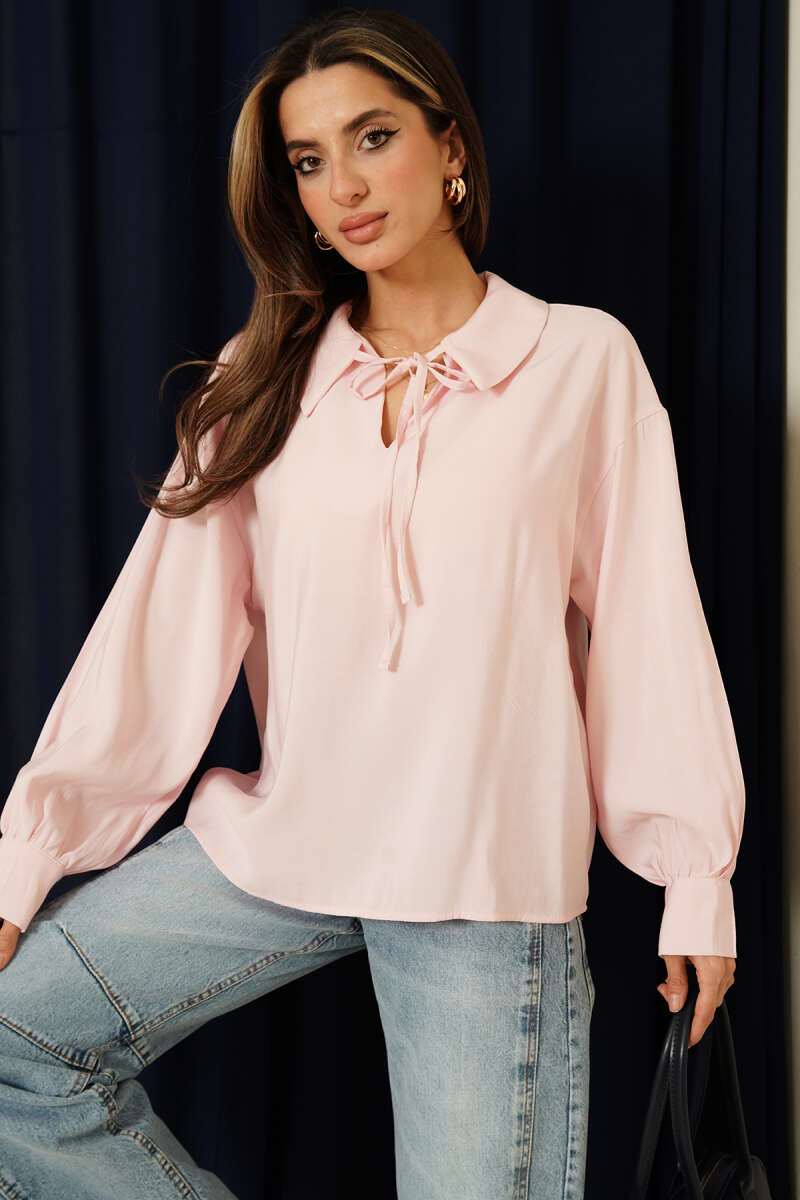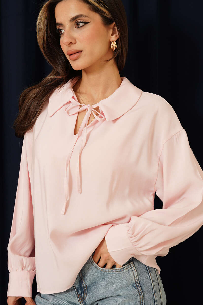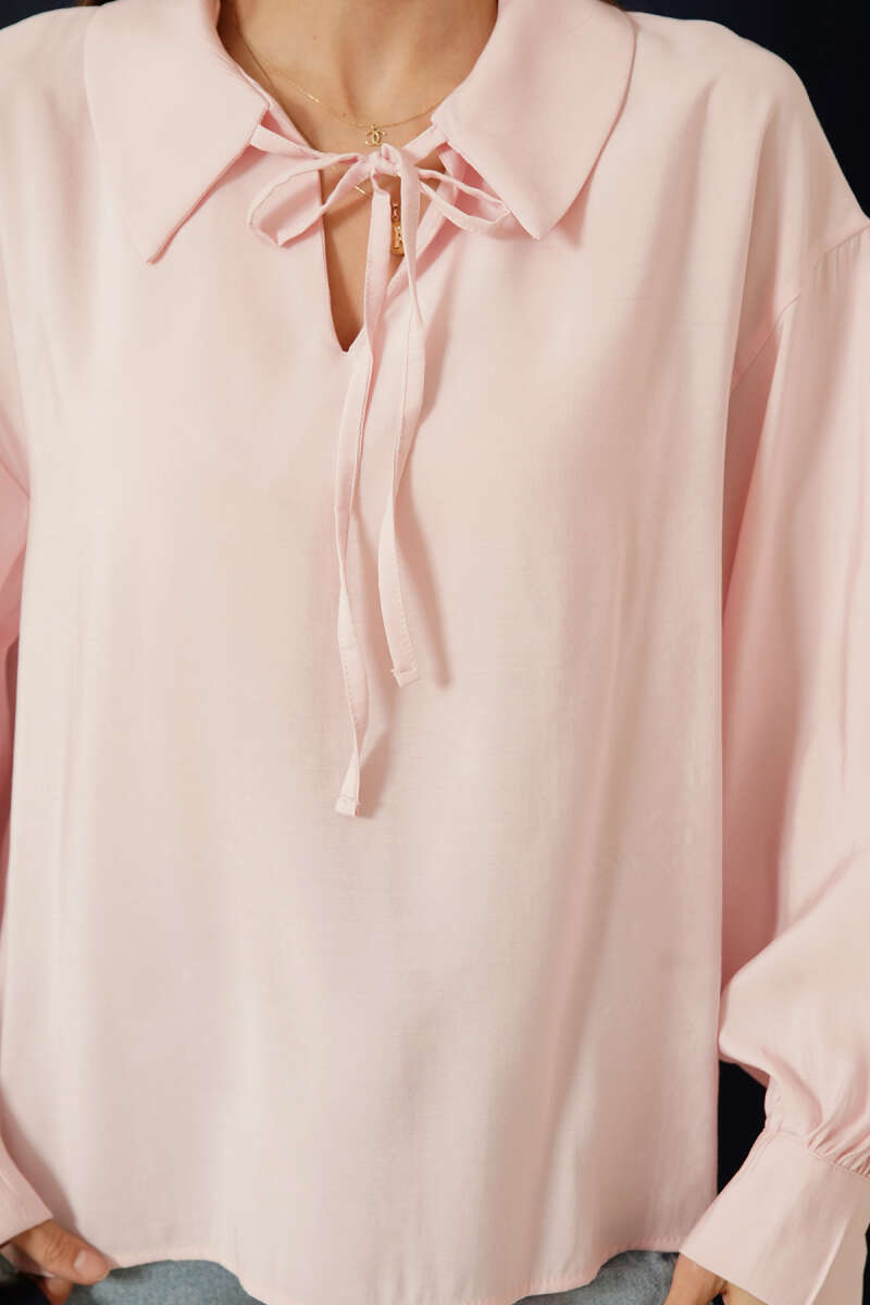 V Yaka Uzun Kol Tensel Bluz Ekru