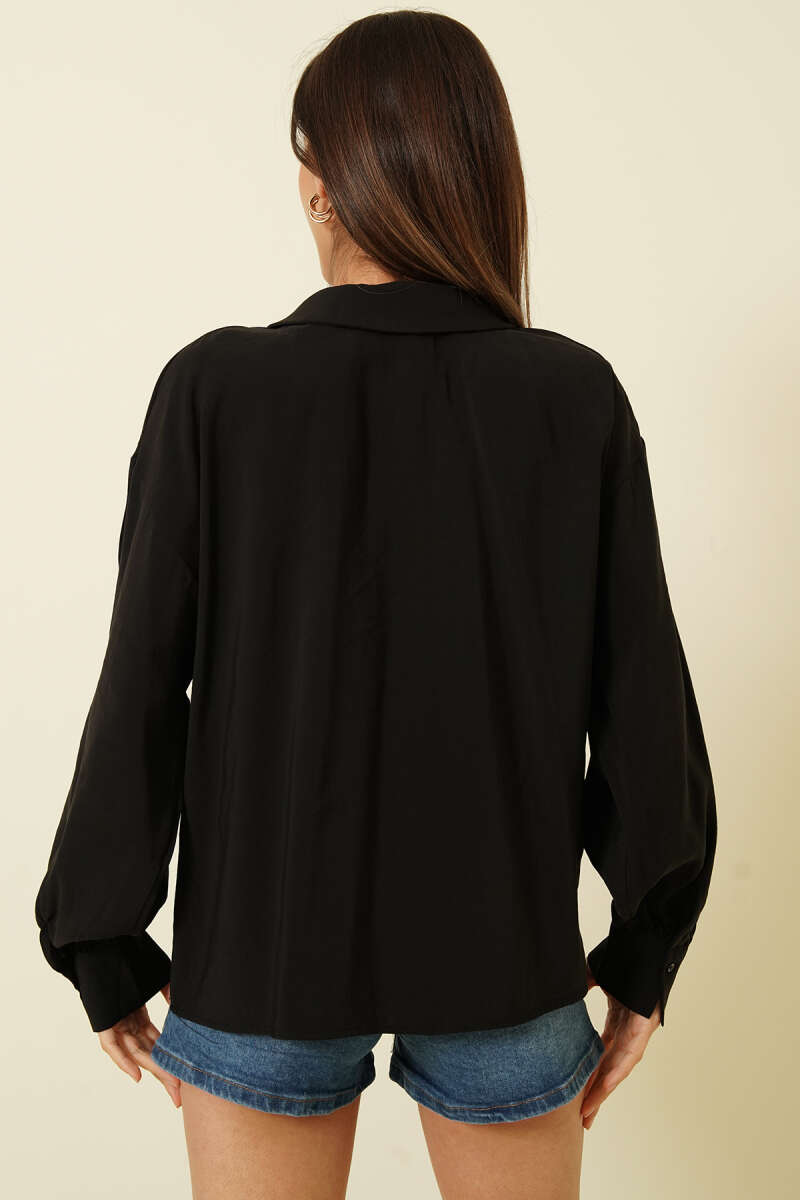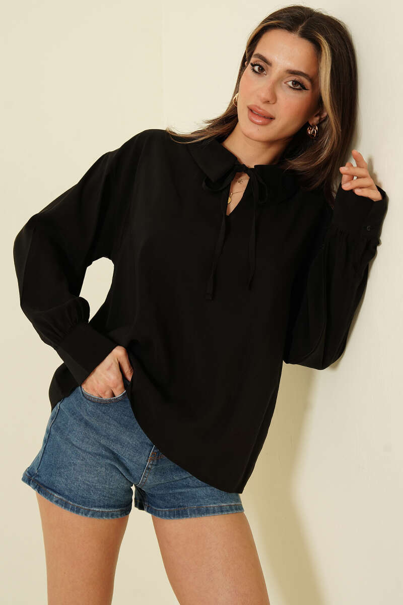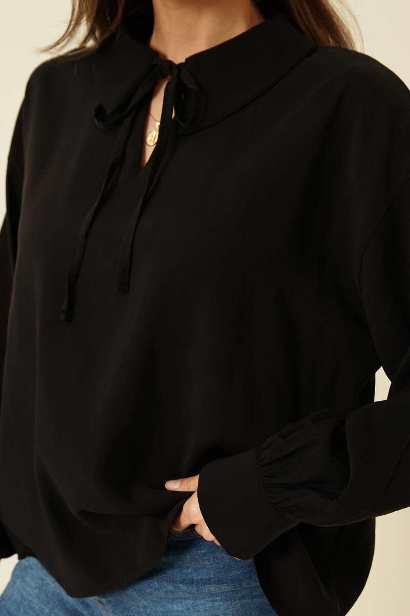 Volan Kollu Fırfırlı Bluz Siyah