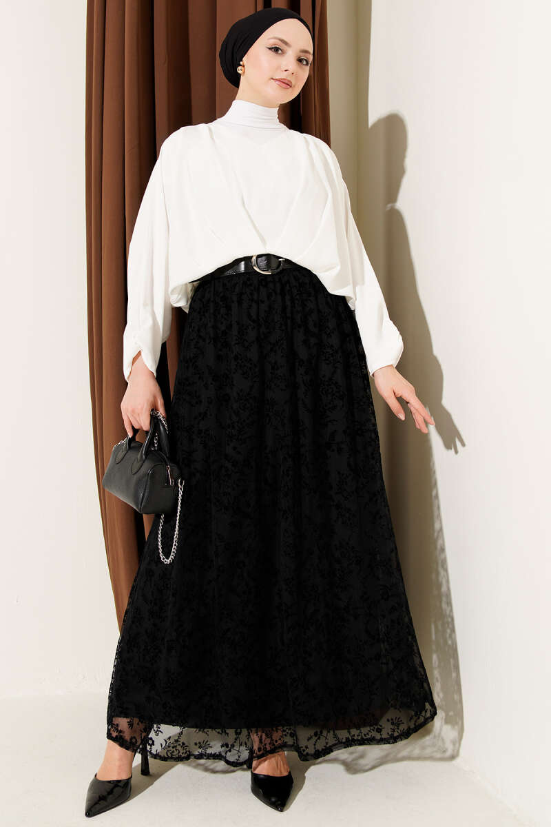 V Yaka Yarasa Kol Saten Bluz Siyah