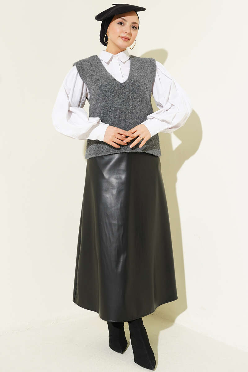 Önü Pileli Bel Tünelli Etekli Takım Acı Kahve
