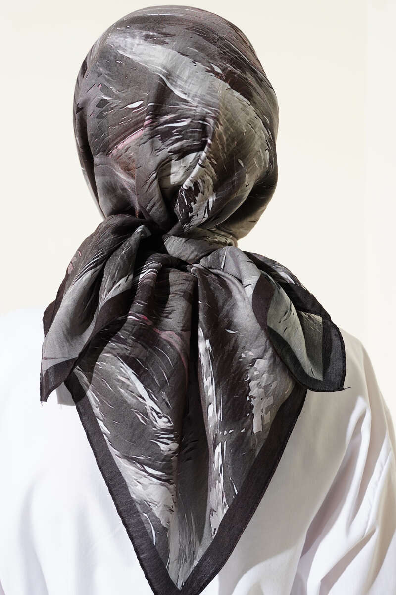 Minik Çiçek Motifli Soft Şal Siyah Vizon
