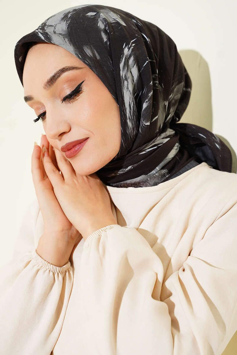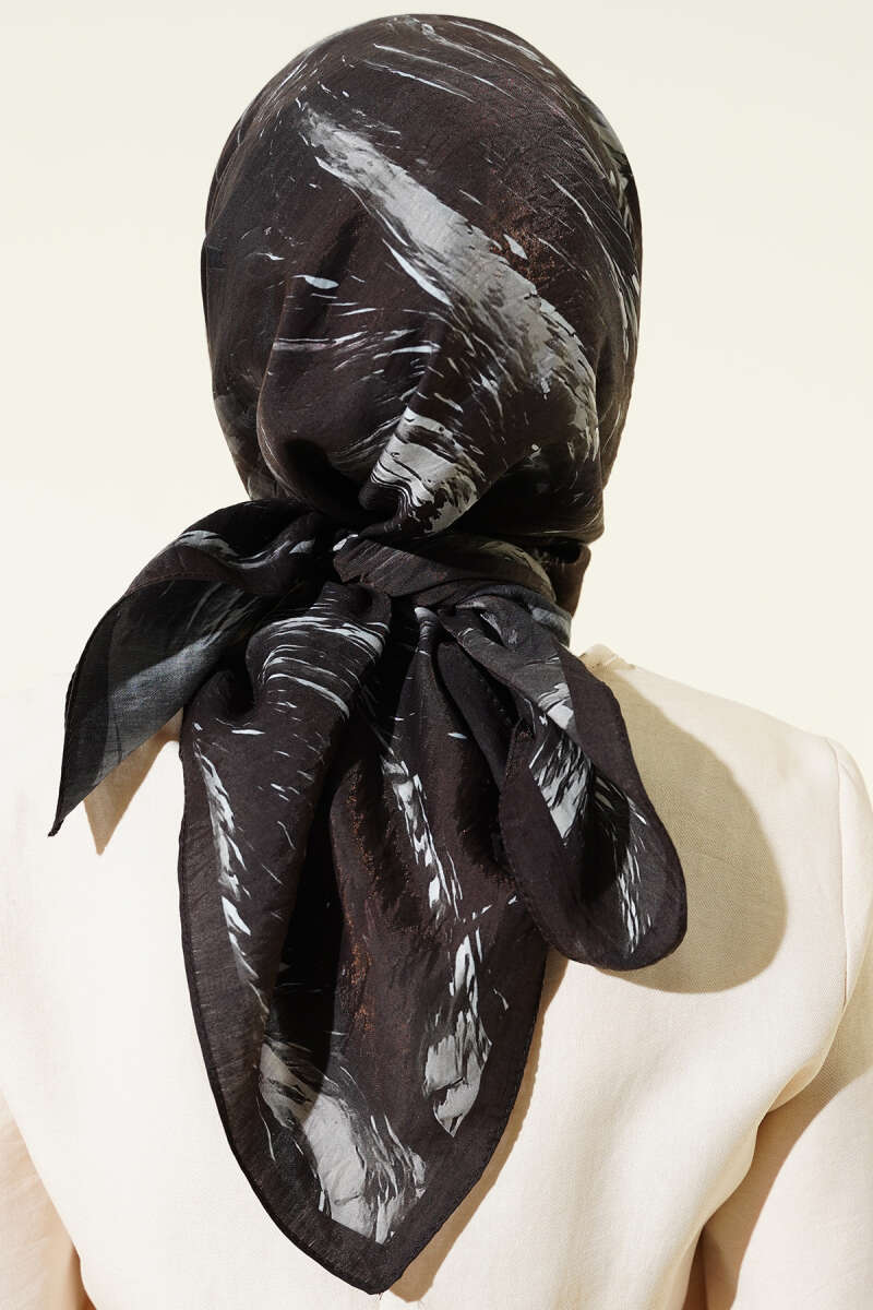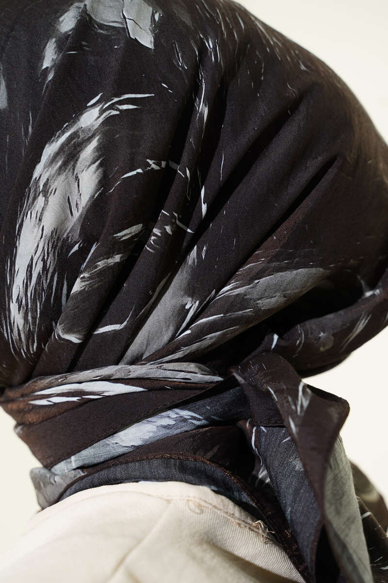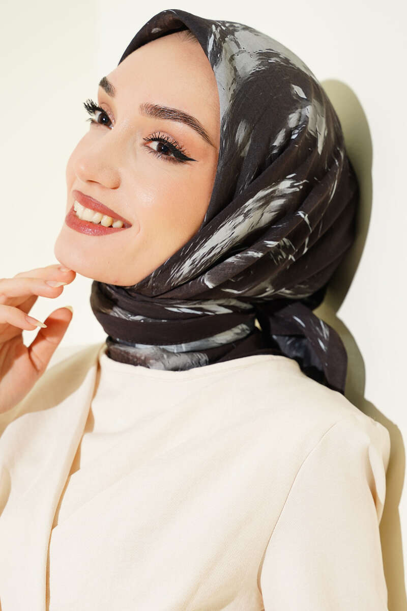 Minik Çiçek Motifli Soft Şal Siyah Vizon