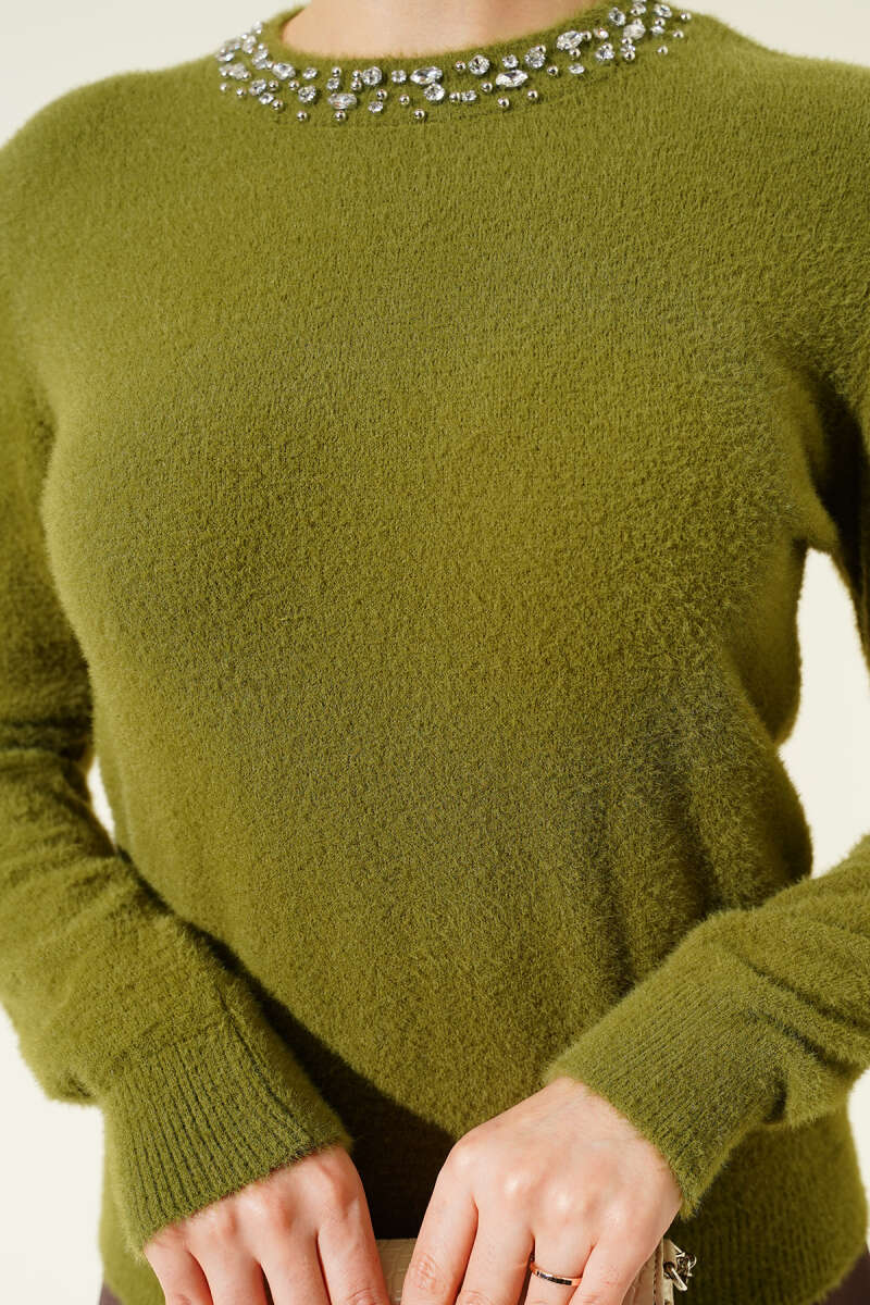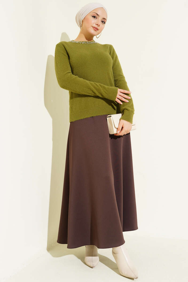 Örgülü Salaş Triko Kazak Yağ Yeşili