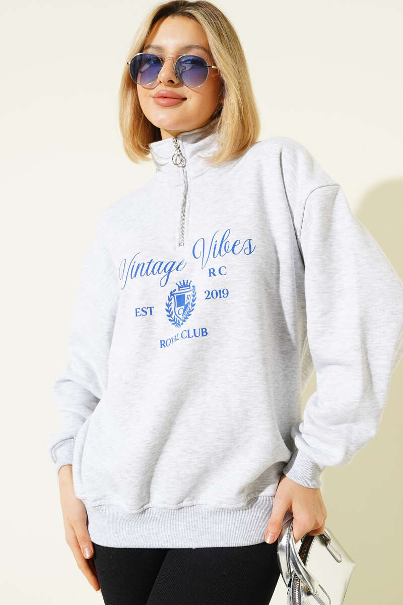 Ayıcık Nakışlı New York Üç İplik Sweatshirt Gri