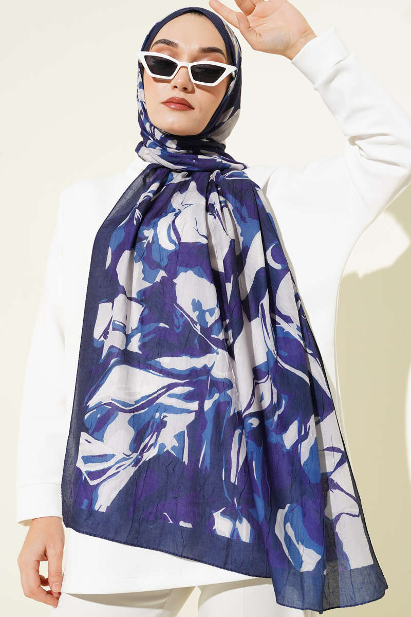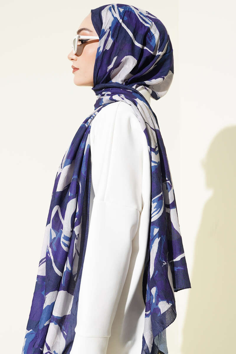 Elora Serisi Desenli Şal Lacivert