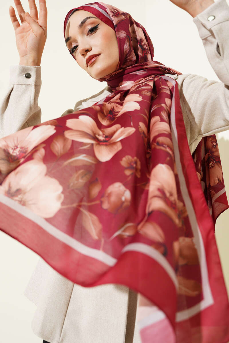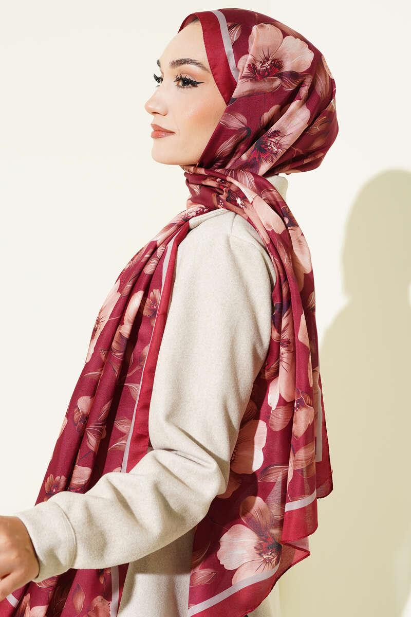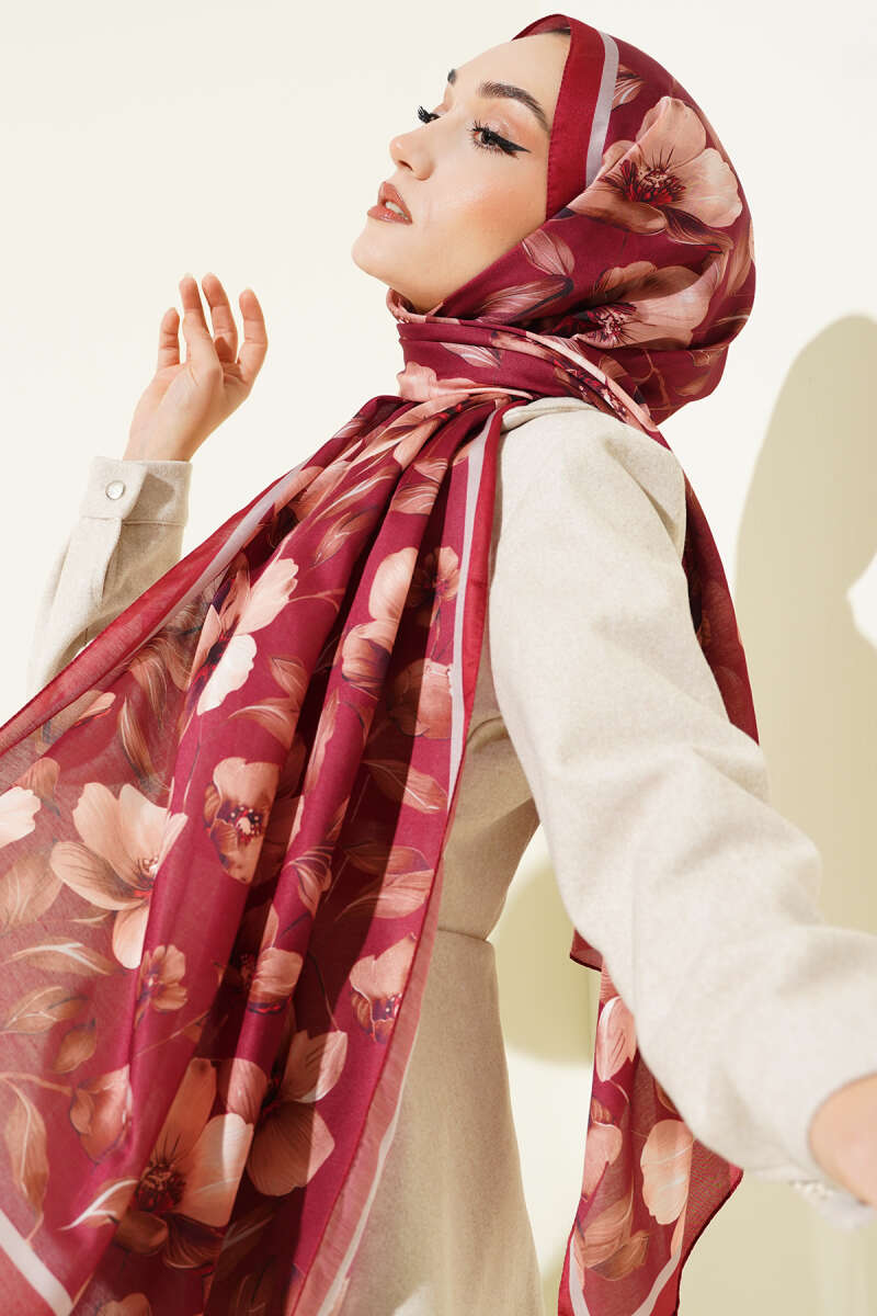 Batik Desen Müslin Şal Mürdüm