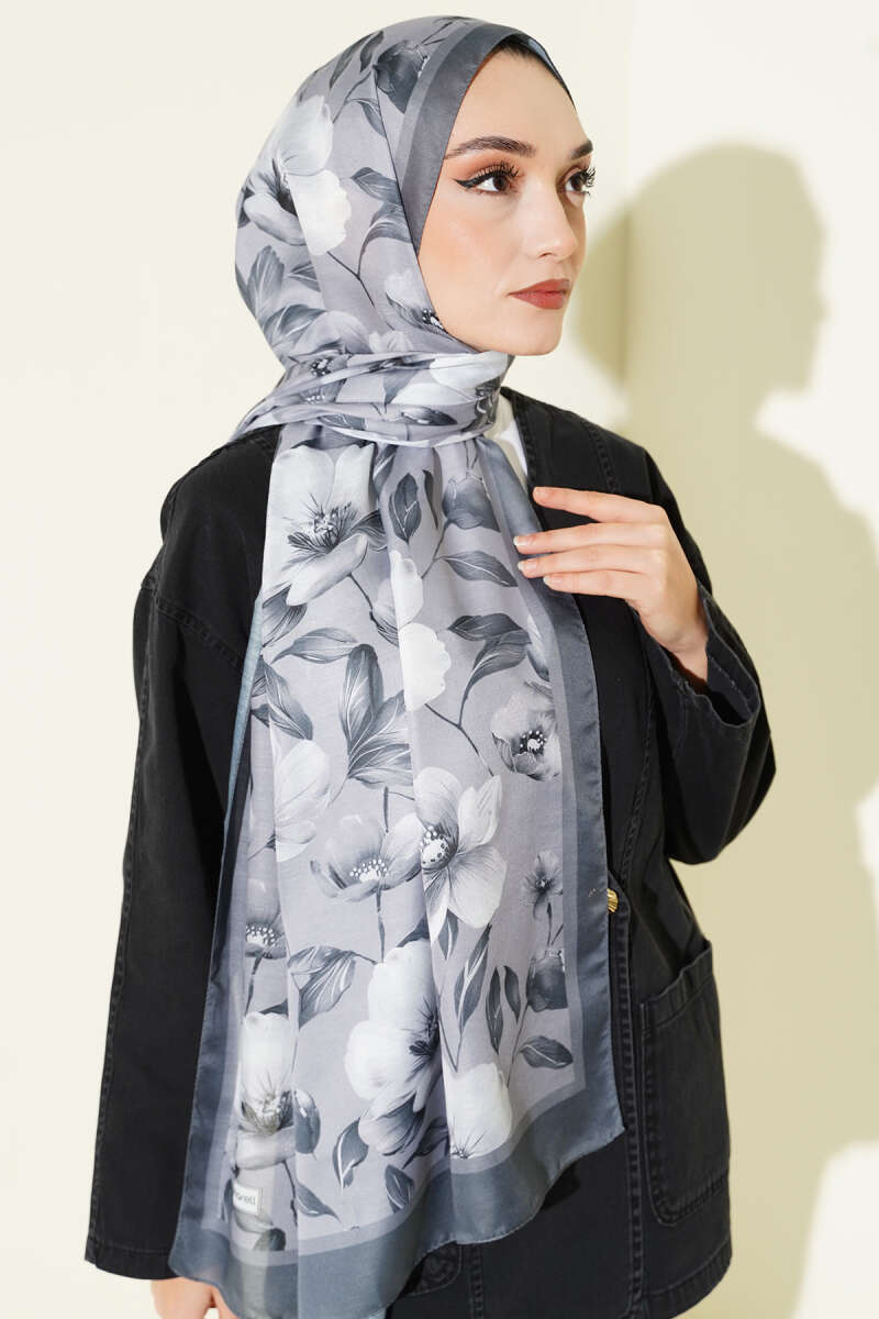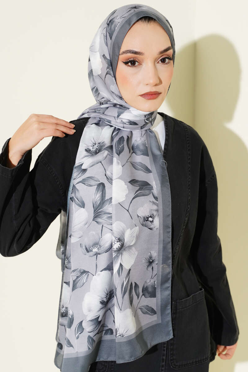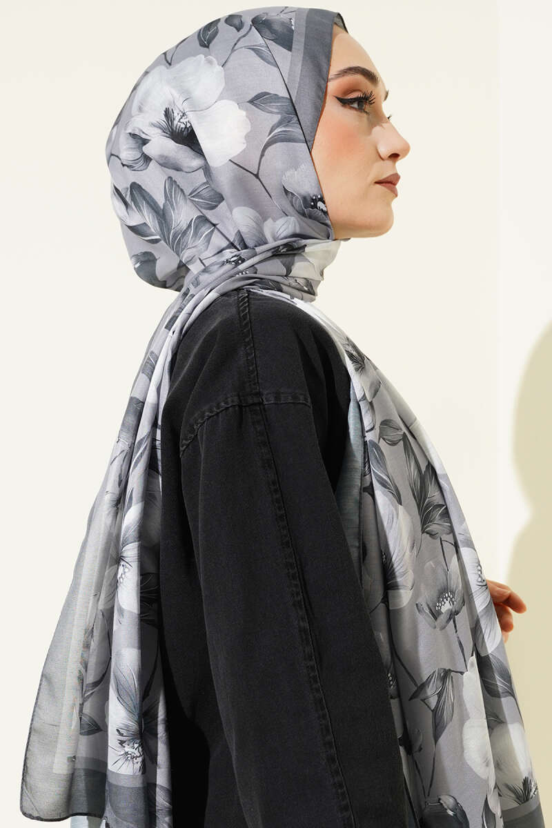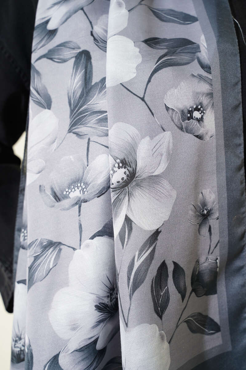 Batik Desen Müslin Şal Siyah Gri