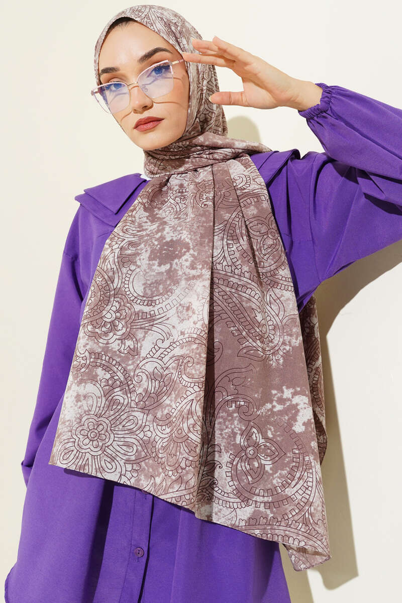 Motifli Modal Eşarp Vizon