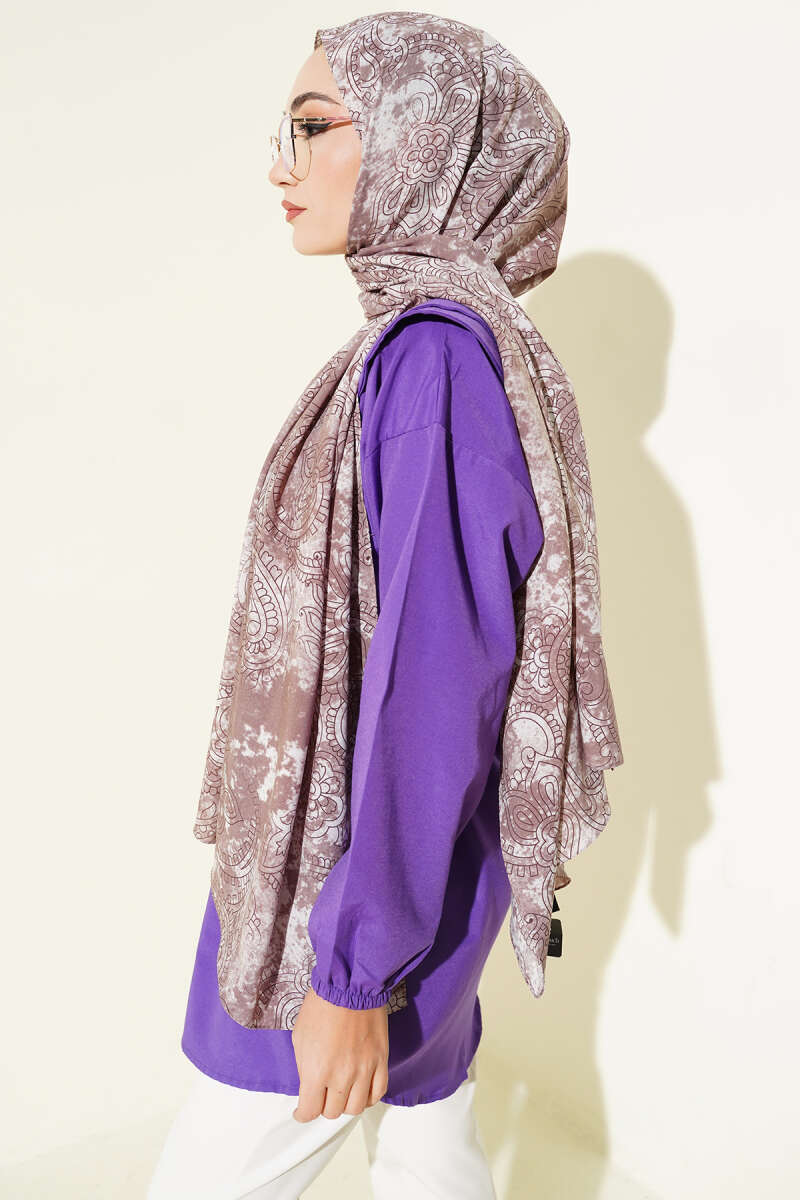 Motifli Modal Eşarp Mürdüm