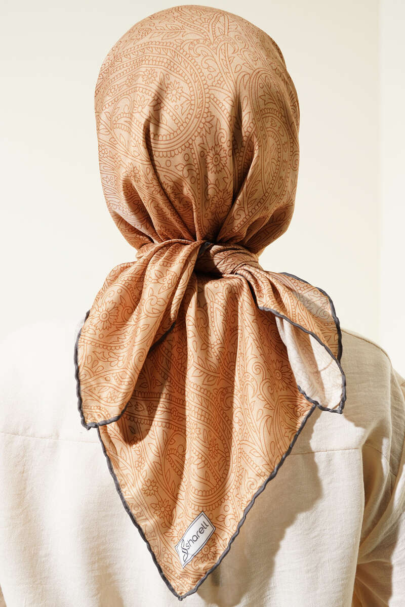 Ebruli Desenli Bambu Kraş Şal Acı Kahve