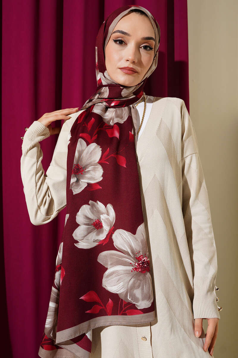 Çiçekli Şerit Geçiş Detaylı Şal Zümrüt