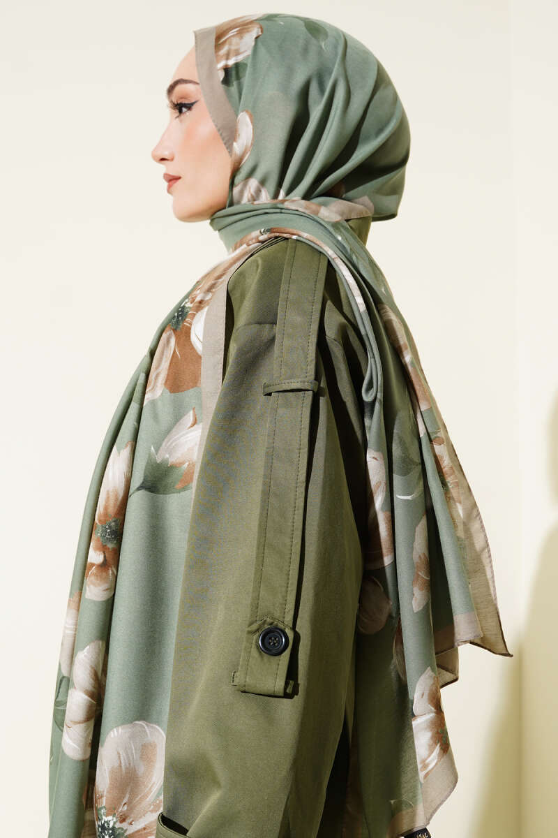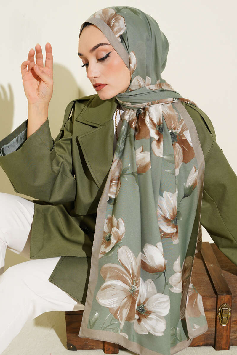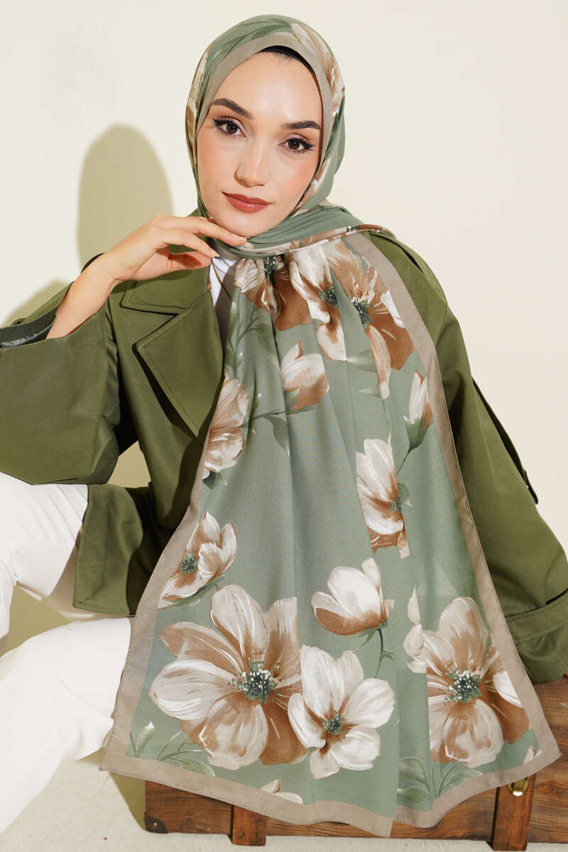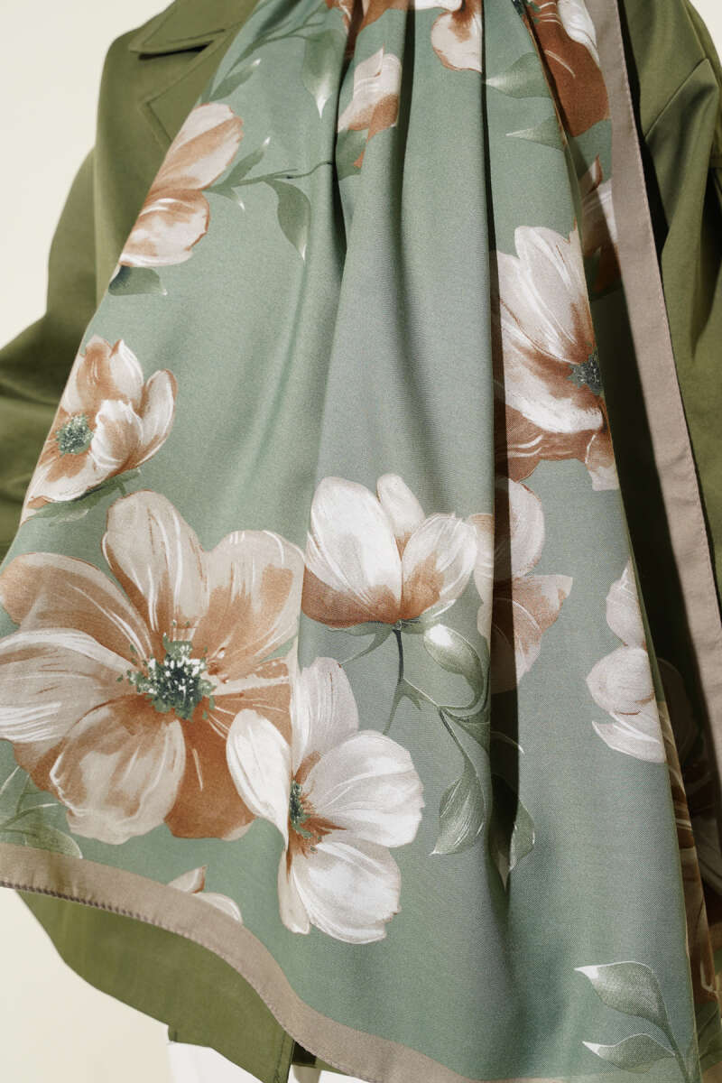 Vintage Rose Desen Şal Çağla Yeşili -04