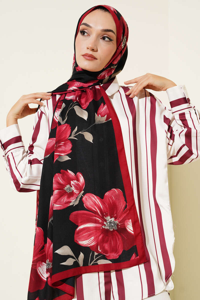 Çiçekli Şerit Geçiş Detaylı Şal Zümrüt