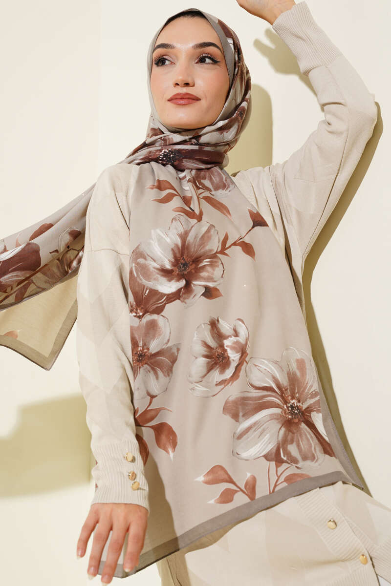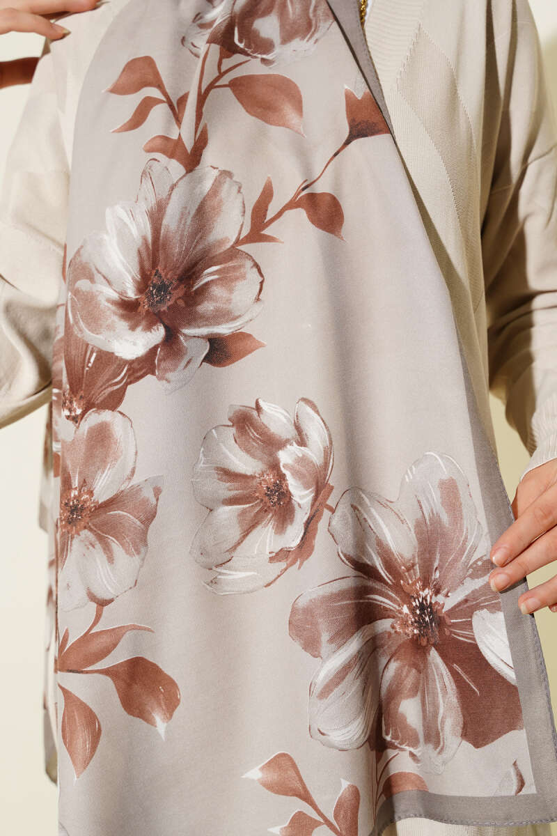 Çiçekli Şerit Geçiş Detaylı Şal Zümrüt