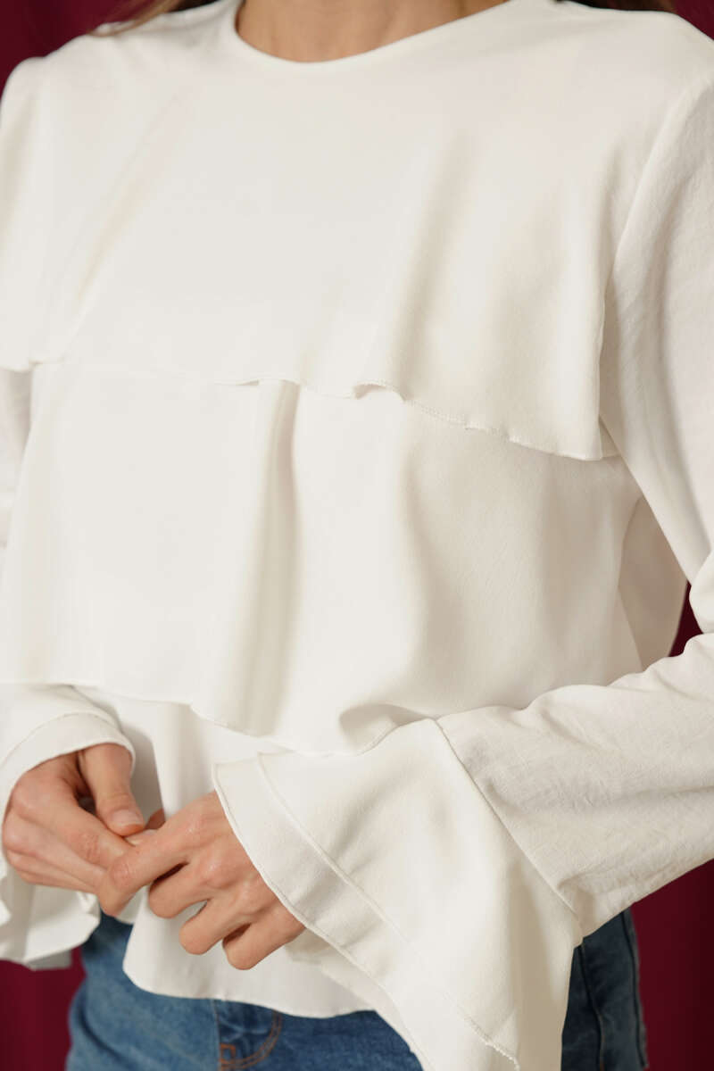Volan Kollu Fırfırlı Bluz Bej