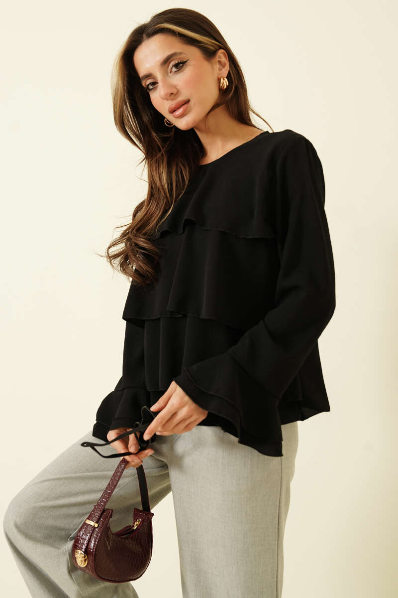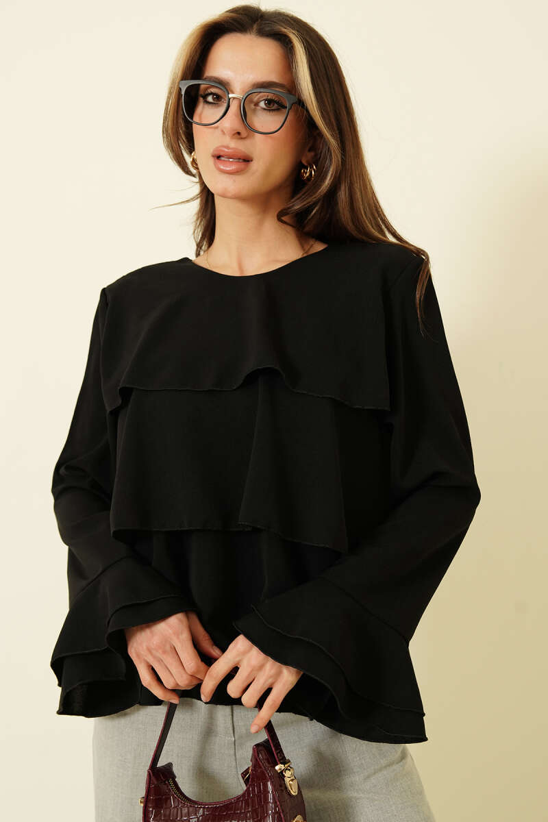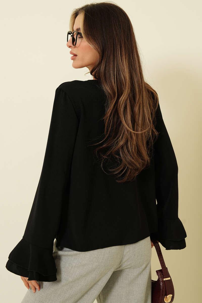 Volan Kollu Fırfırlı Bluz Kahve