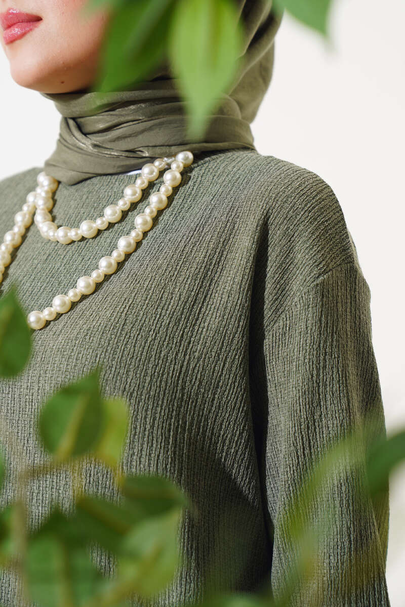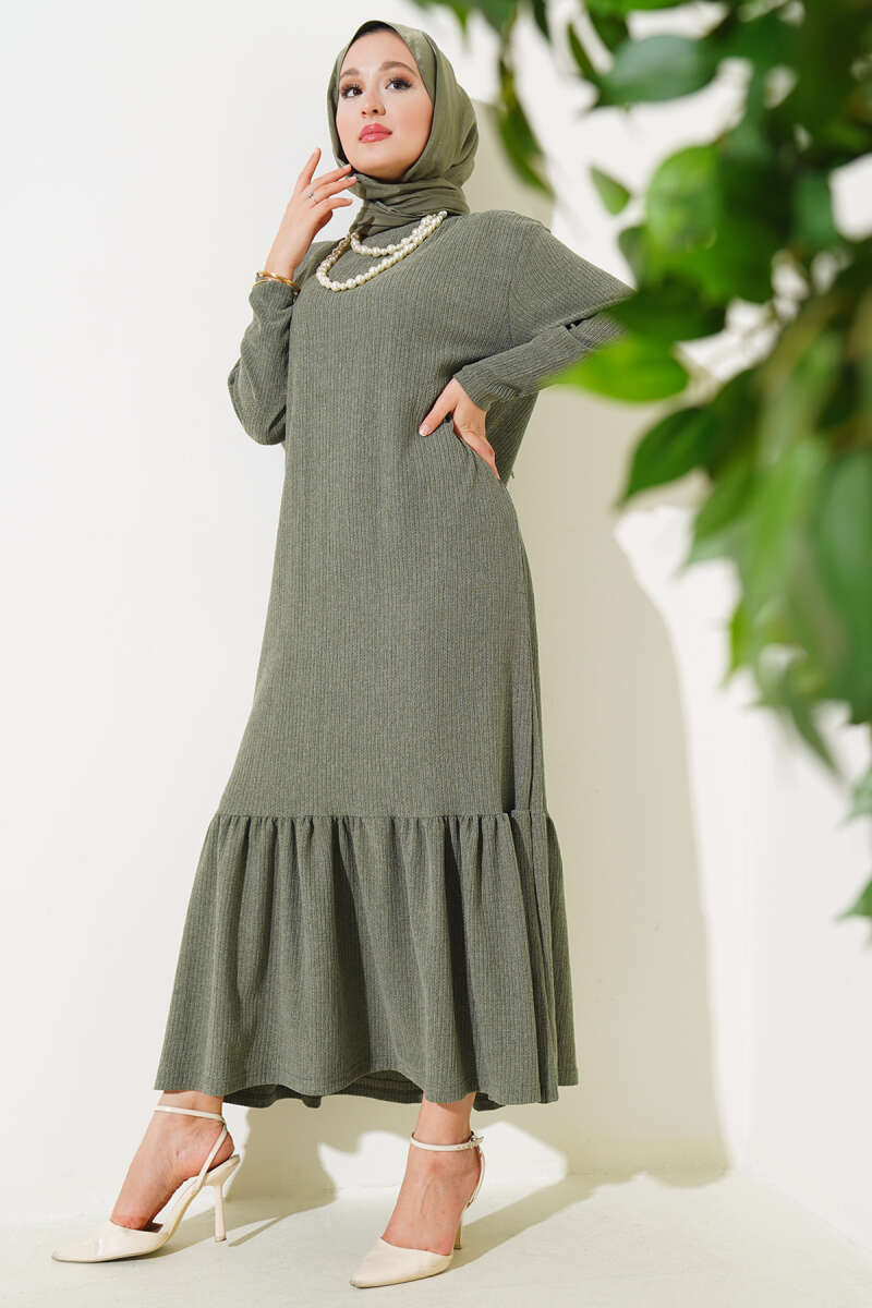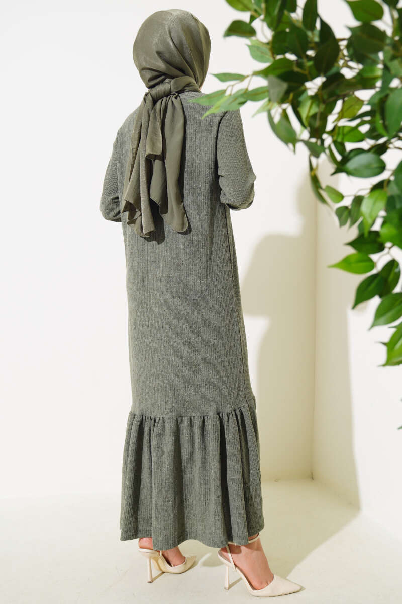 Bel Lastikli Fermuarlı Tensel Elbise Haki