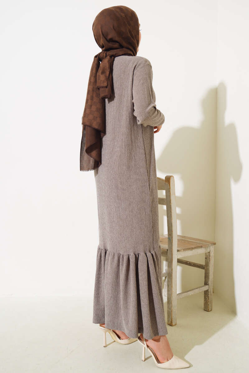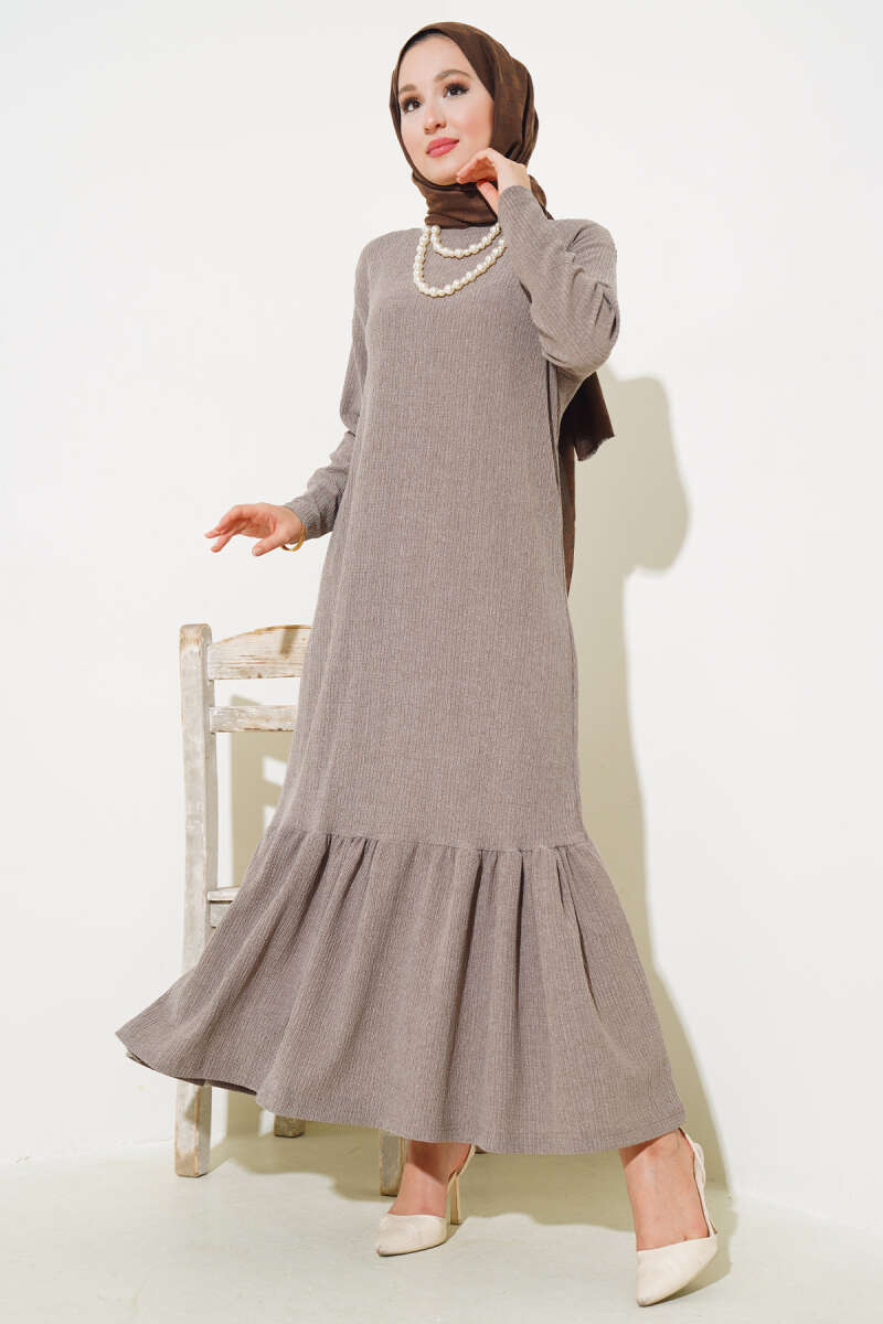 Volanlı Bürümcük Elbise Vizon