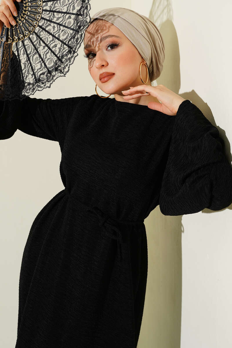 Volanlı Damla Örme Elbise Siyah