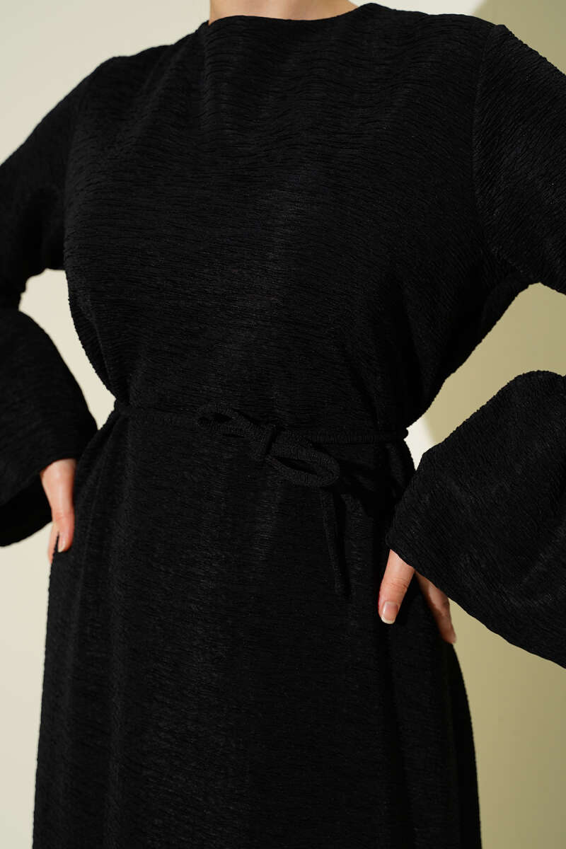 Kemerli Fularlı Tensel Elbise Siyah