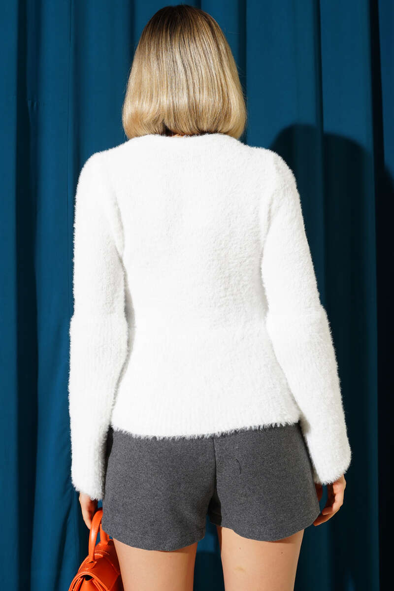 Gold Düğmeli Ters Dikişli Triko Hırka Ekru