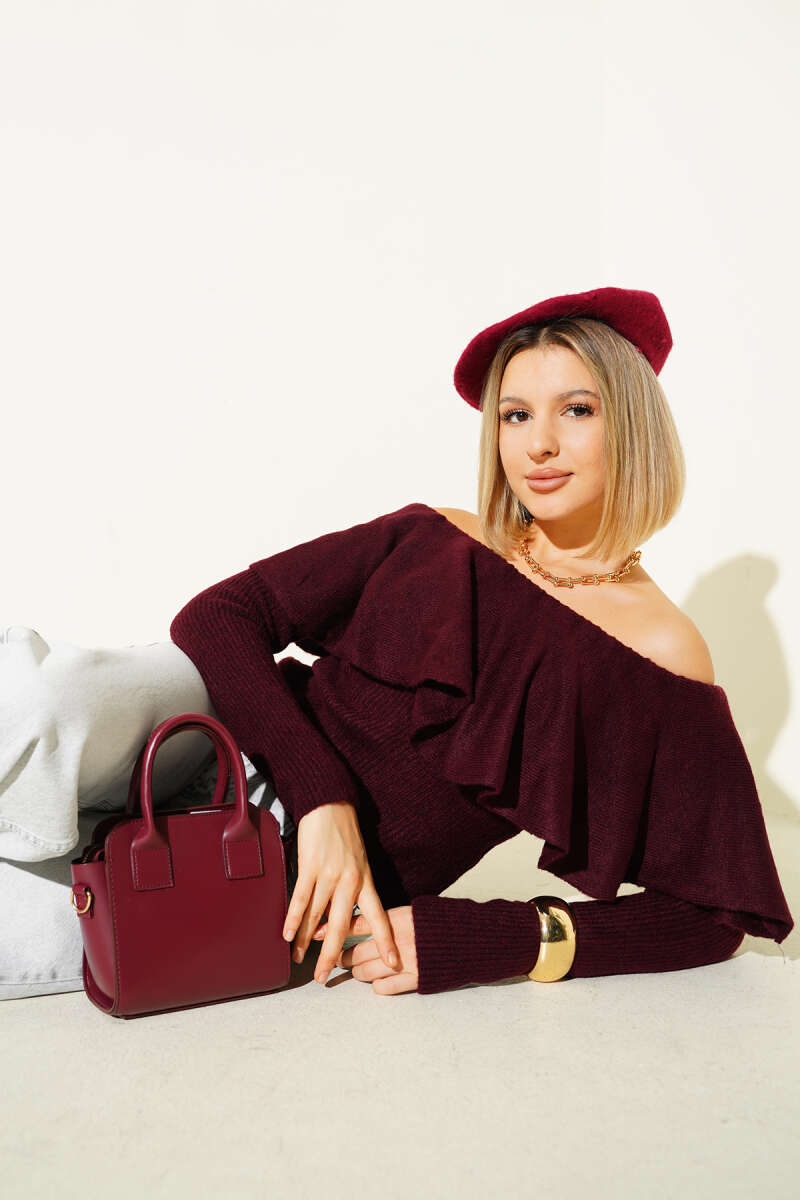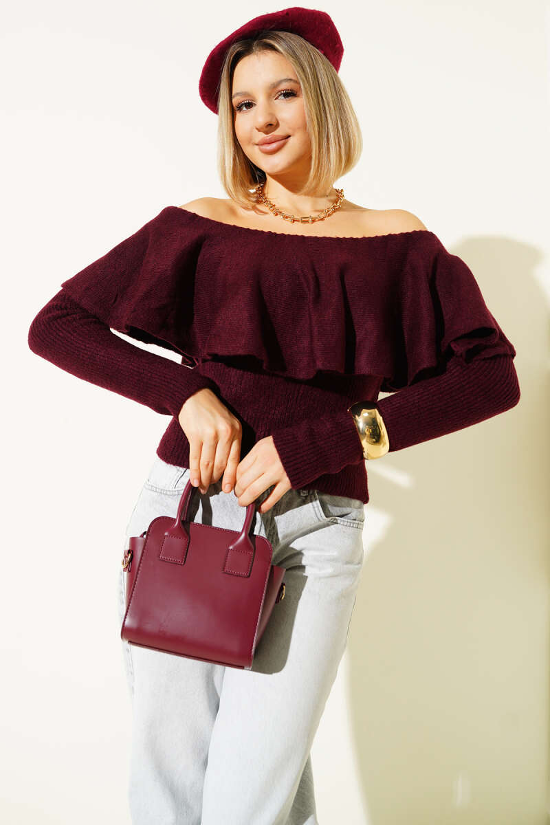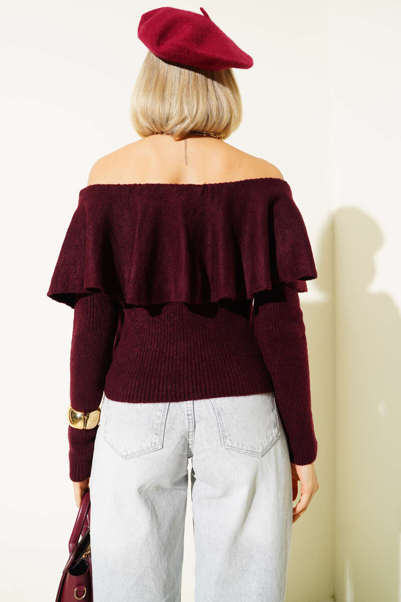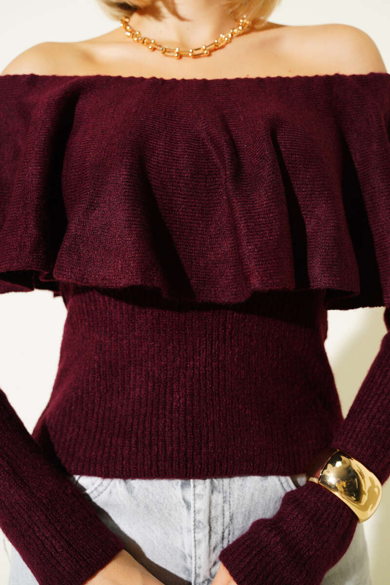 Volanlı Triko Kazak Bordo