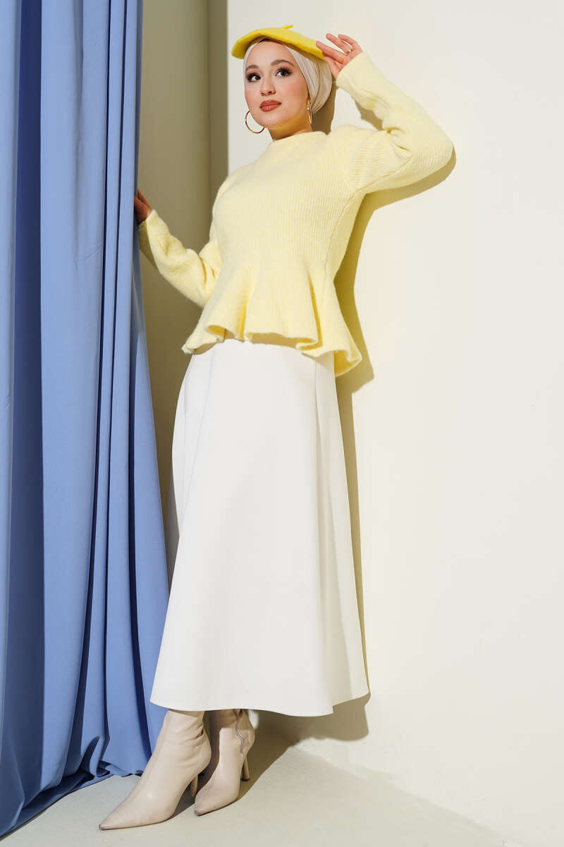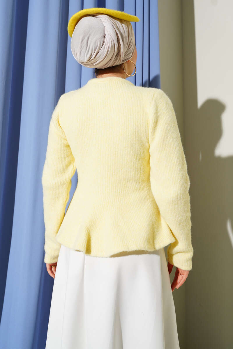 Fitilli Esnek Triko Kazak Mavi