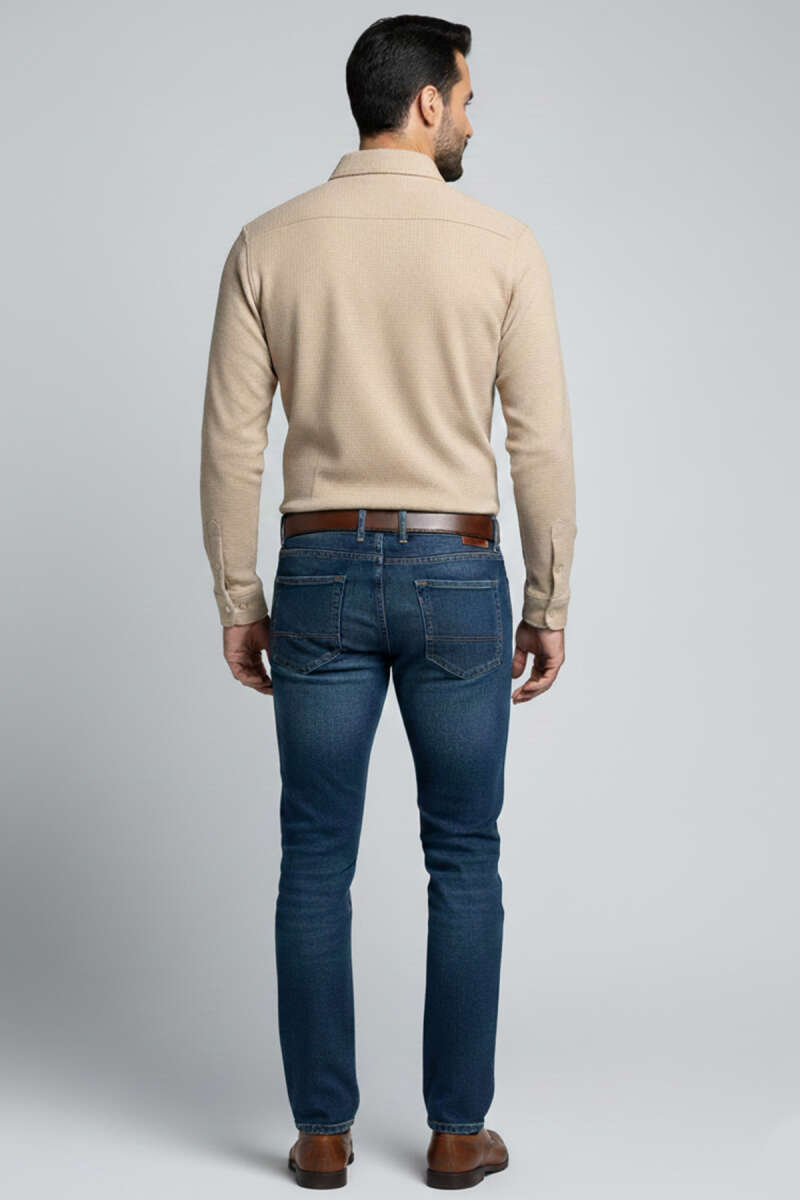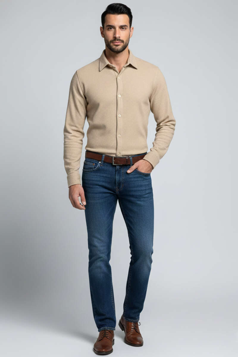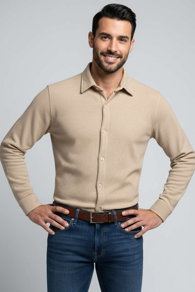 Waffle Desen Erkek Gömlek Ekru