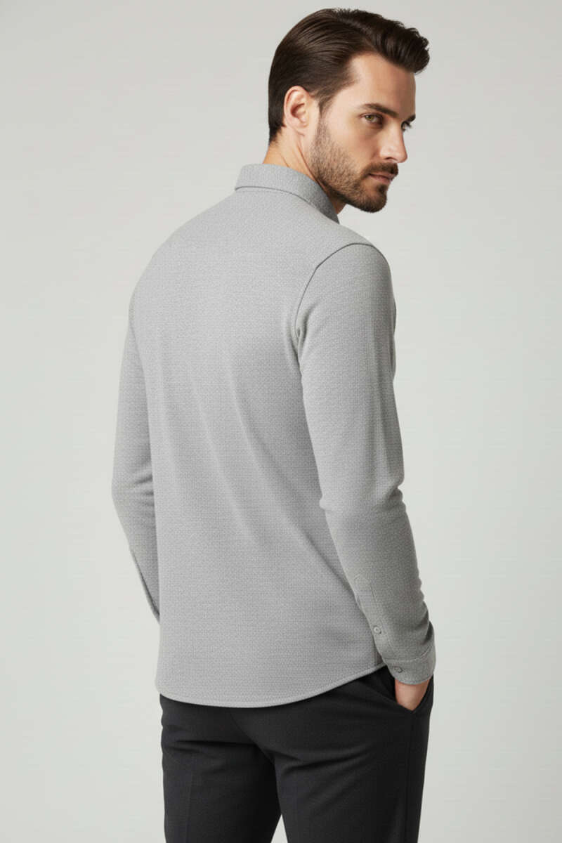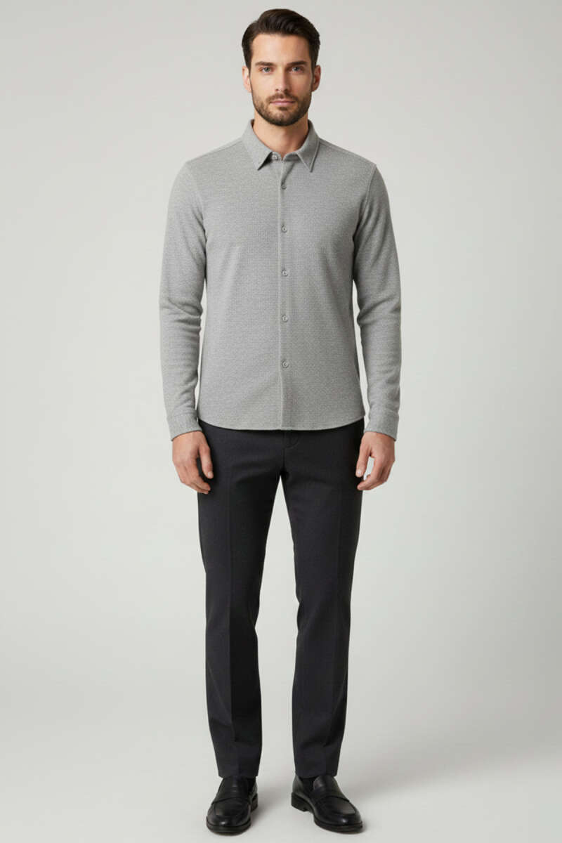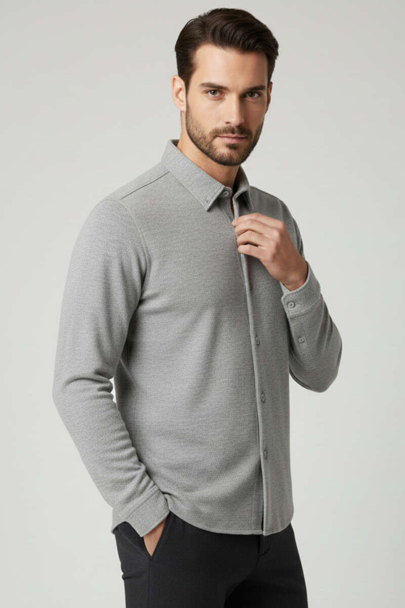 Kesik Çizgili Erkek Keten Gömlek Gri