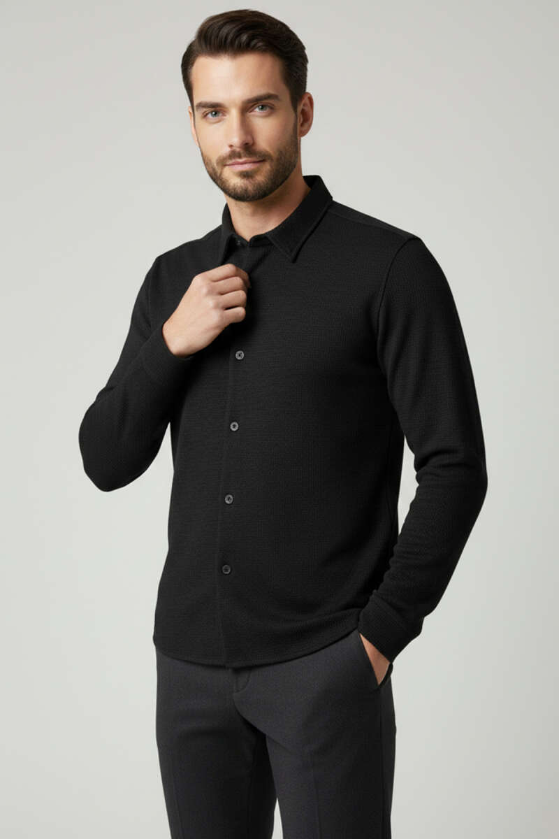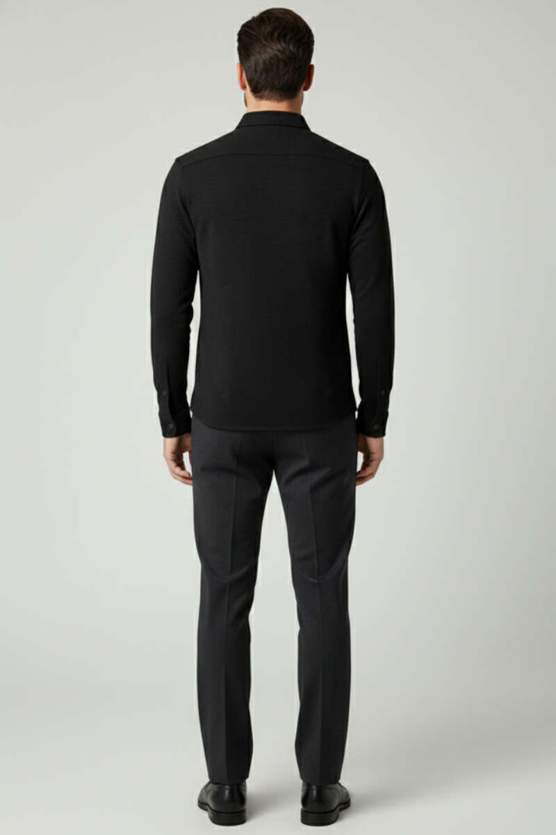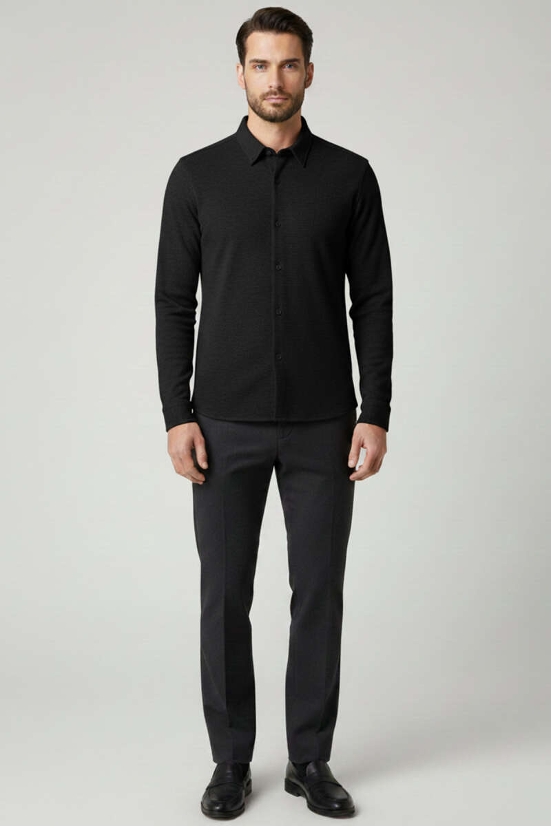 Kesik Çizgili Erkek Keten Gömlek Siyah
