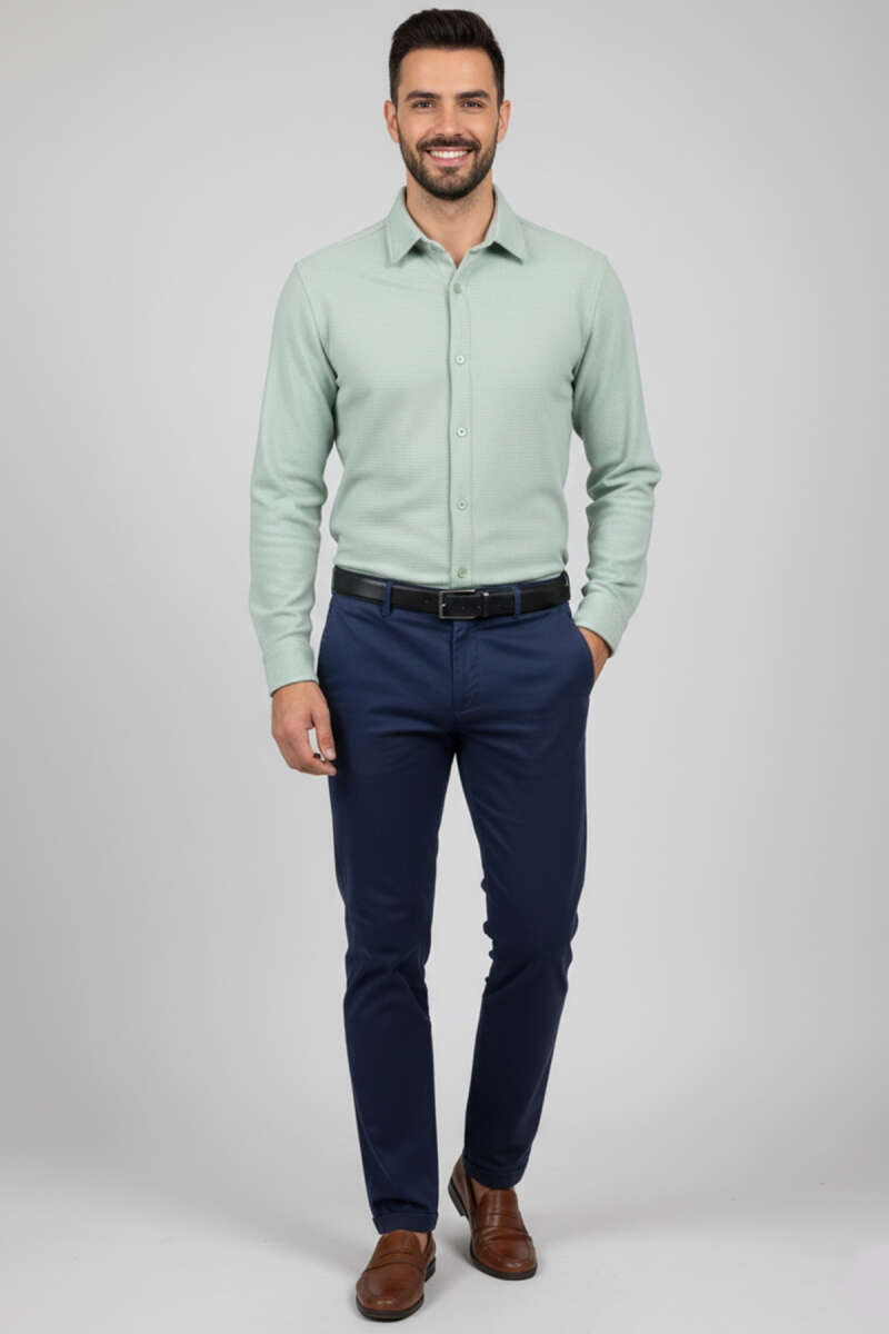 Slim Fit Pamuk Saten Erkek Gömlek Lacivert