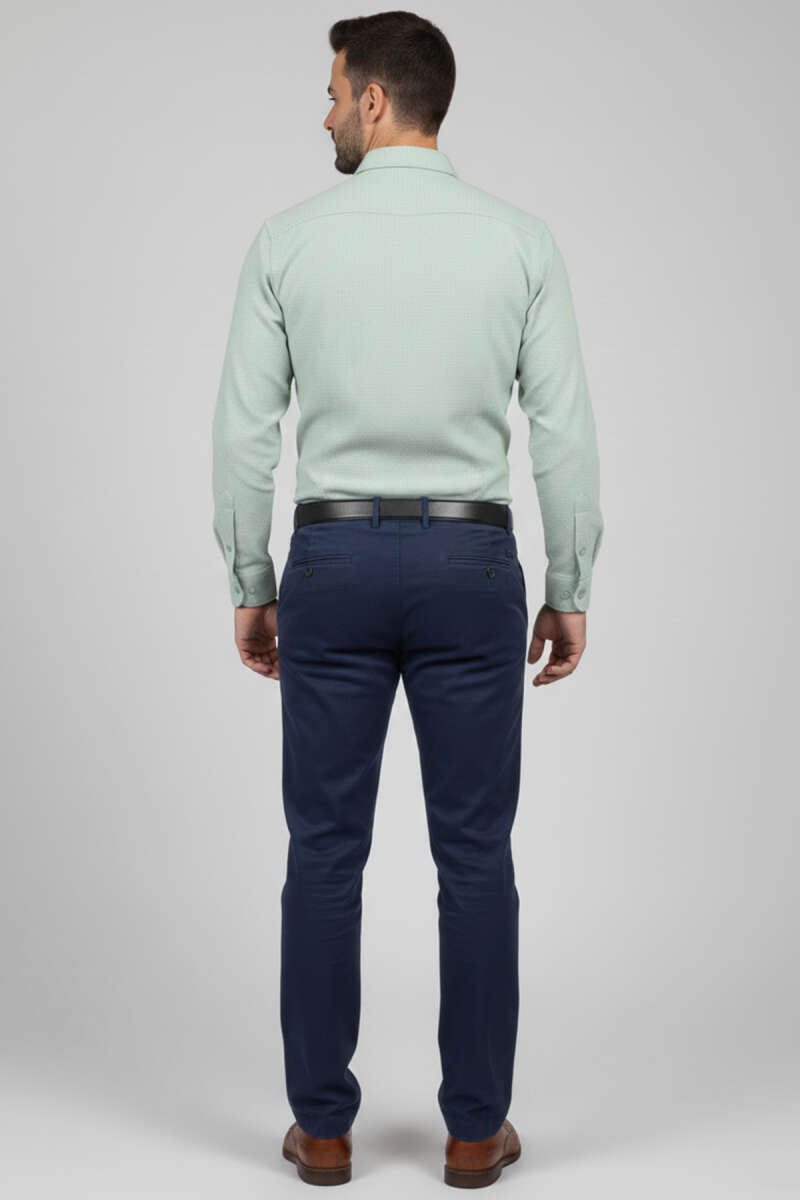 Kesik Çizgili Erkek Keten Gömlek Lacivert