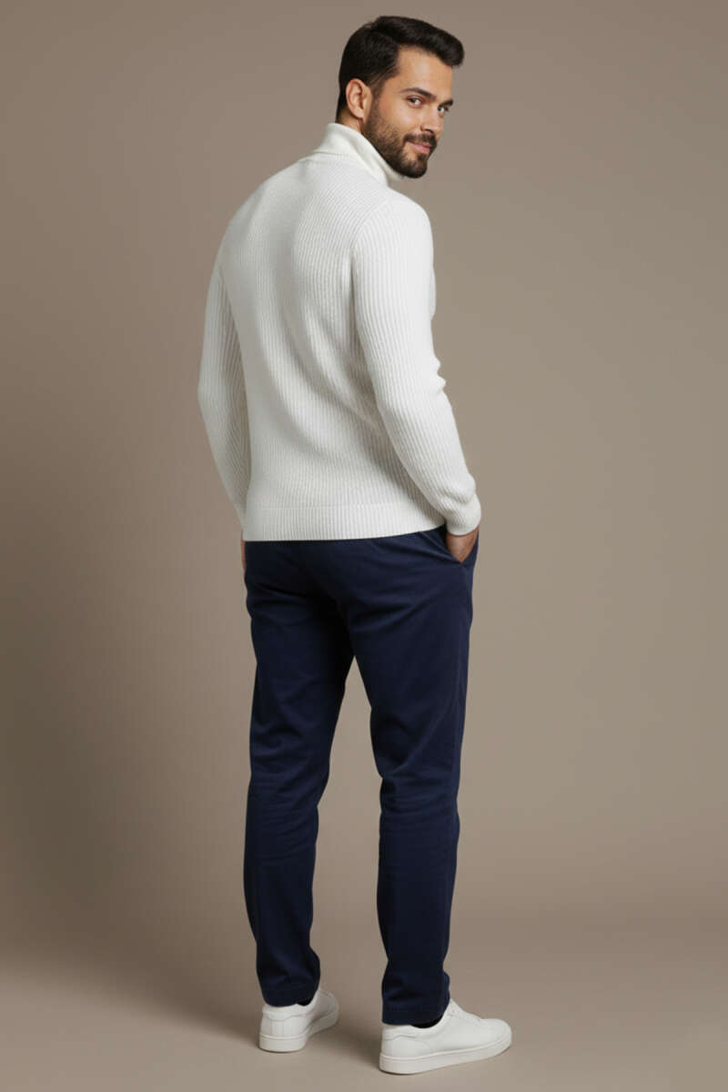 Yarım Fermuar Polo Yaka Erkek Kazak Beyaz