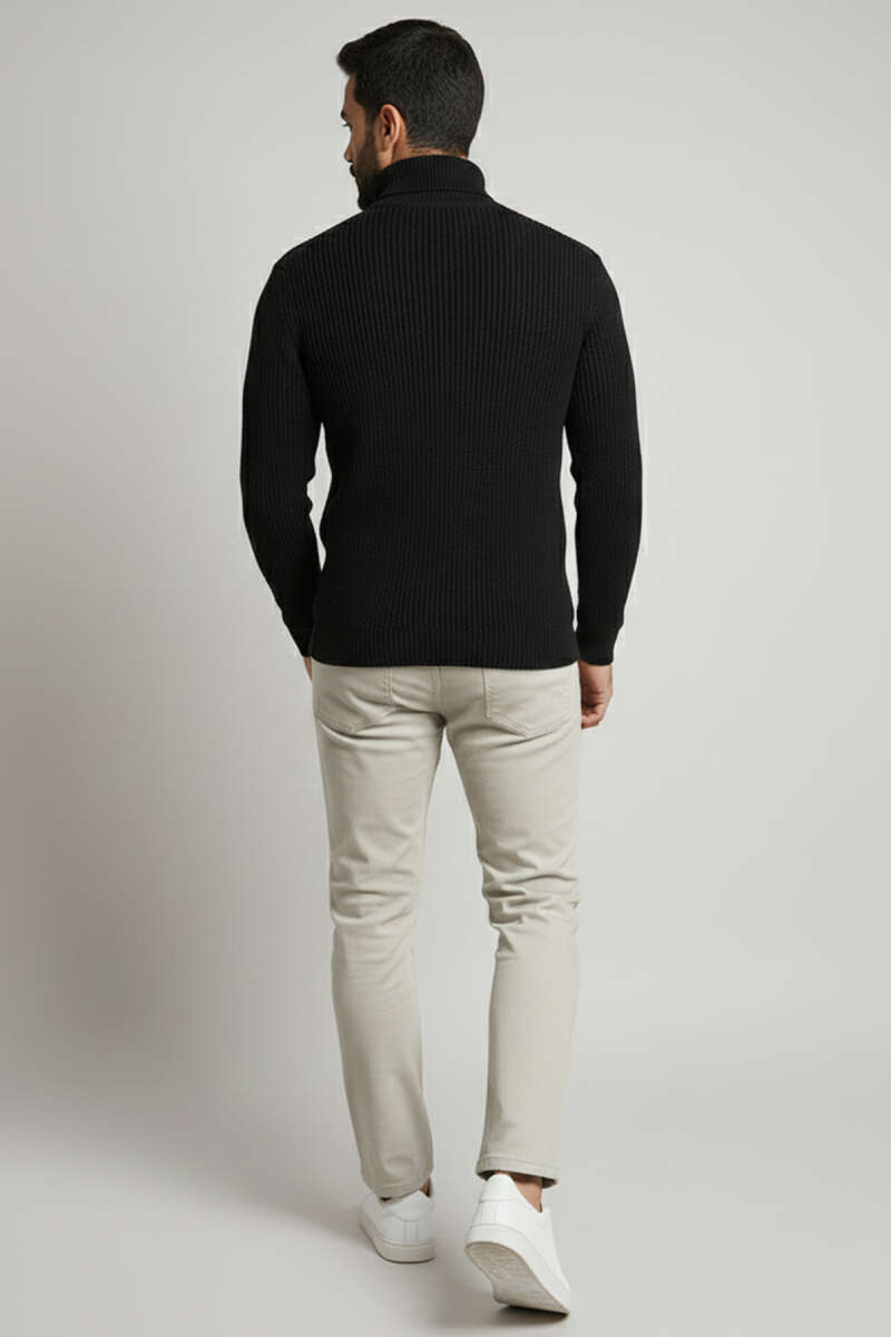 Yarım Fermuar Boğazlı Kazak Siyah