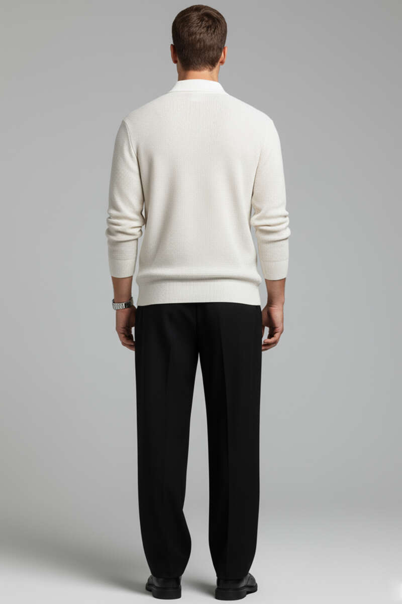 Waffle Kumaş Polo Yaka Erkek Sweatshirt Lacivert