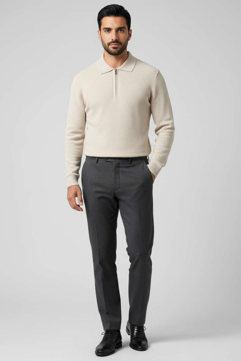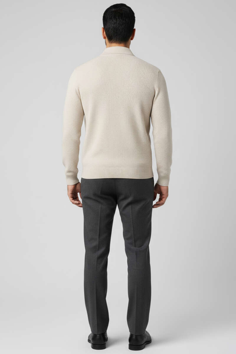 Yaka Yazılı Fermuarlı Erkek Sweatshirt Ekru