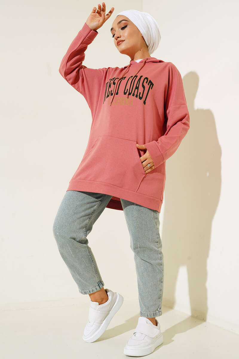 Yeni sezon tuniğimiz sportif kombinlerinde sıklıkla tercih edeceksiniz. Kapüşonlu tuniğimizin önünde bulunan west coast baskısı dikkat çekmektedir. Kapüşonu ip bağlamalı olan tuniğimiz kanguru ceplidir.