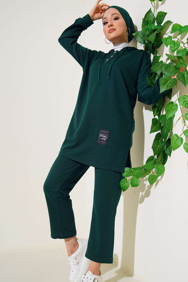 What Ever Armalı Kapüşonlu İkili Takım Zümrüt Yeşili