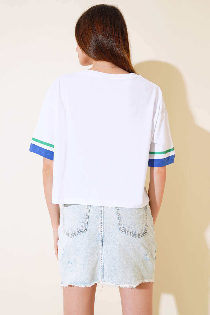 Bisiklet Yaka Bürümcük T-shirt Mavi