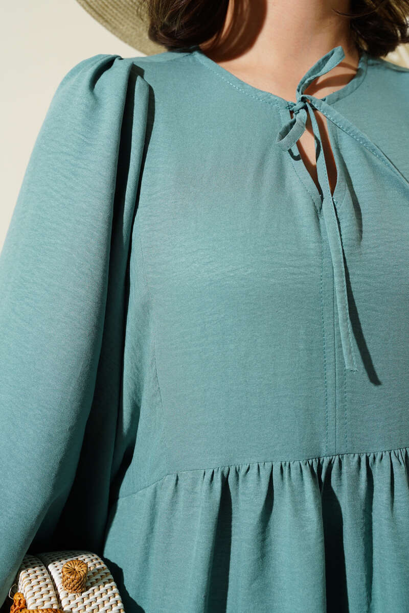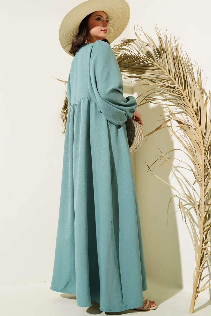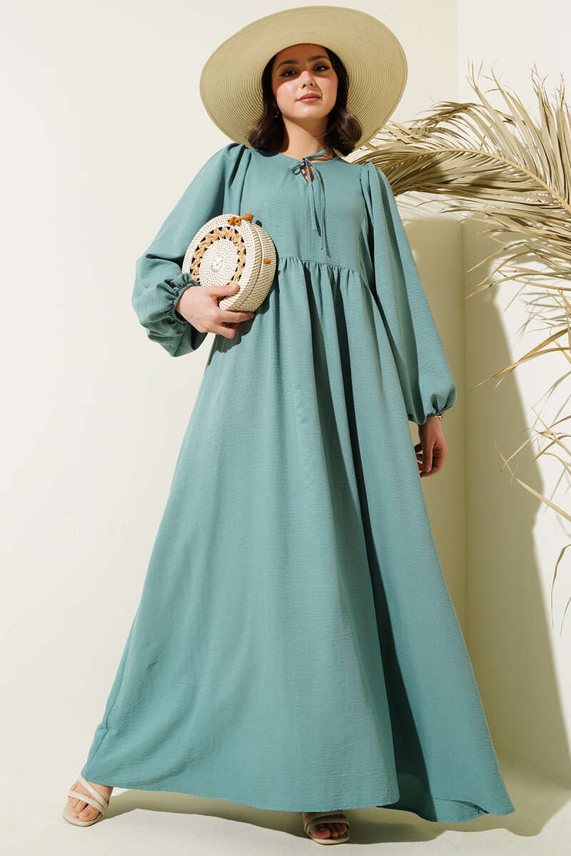Kuşaklı Dik Fitilli Kaşe Elbise Haki
