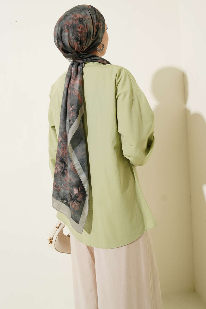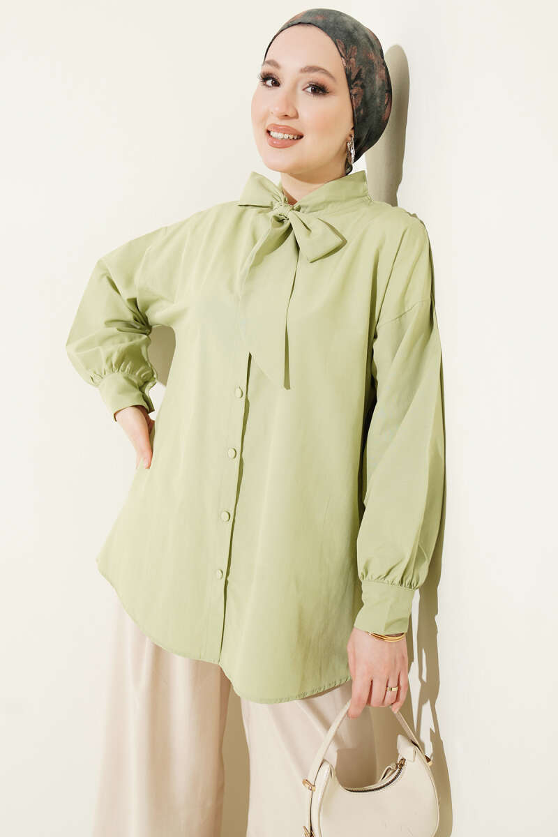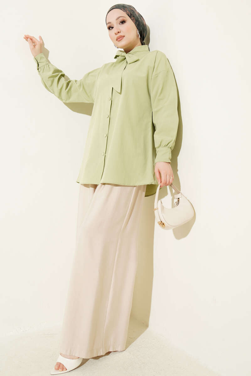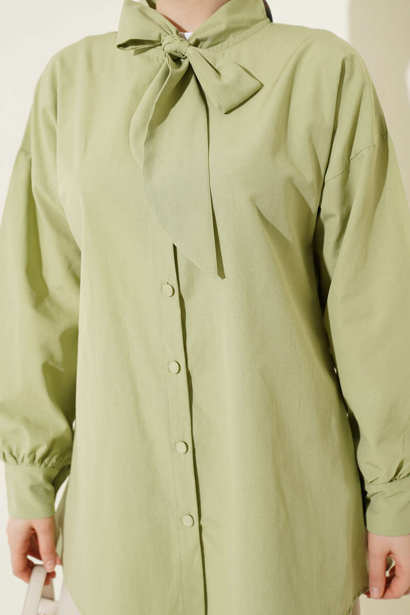 Yaka Bağlama Detaylı Gömlek Çağla Yeşili