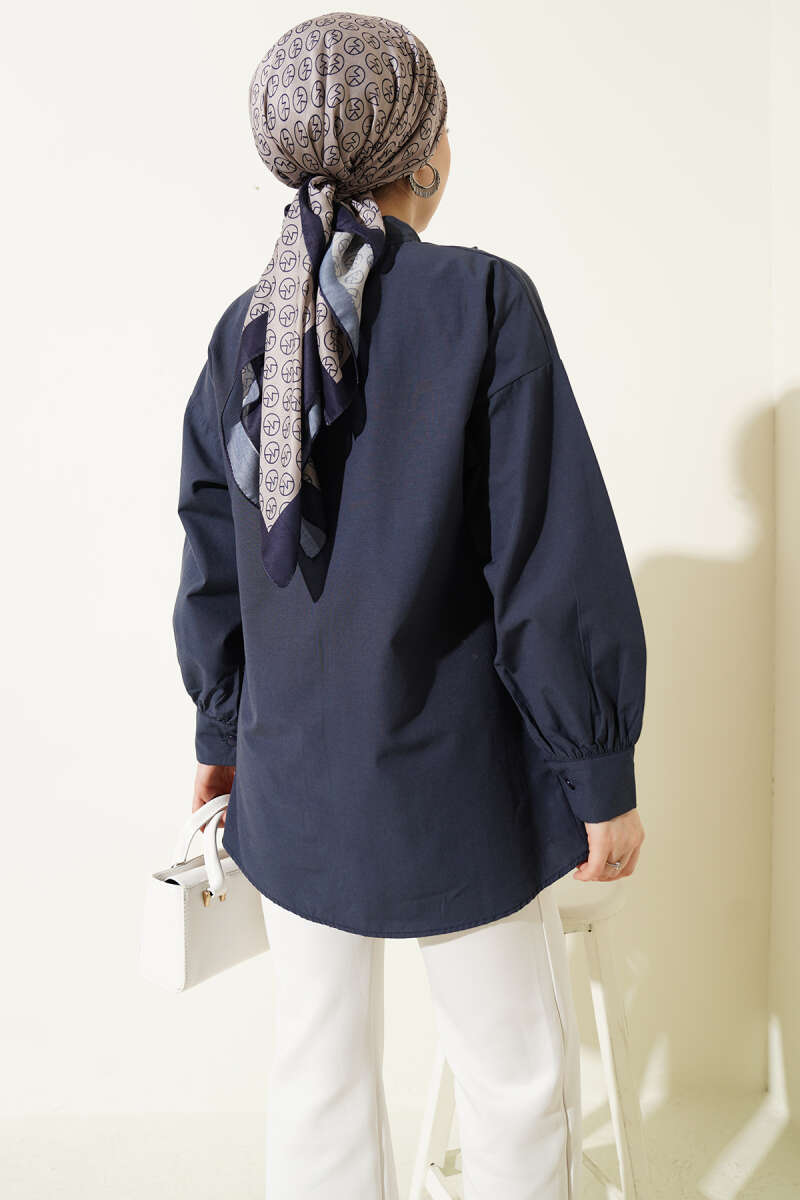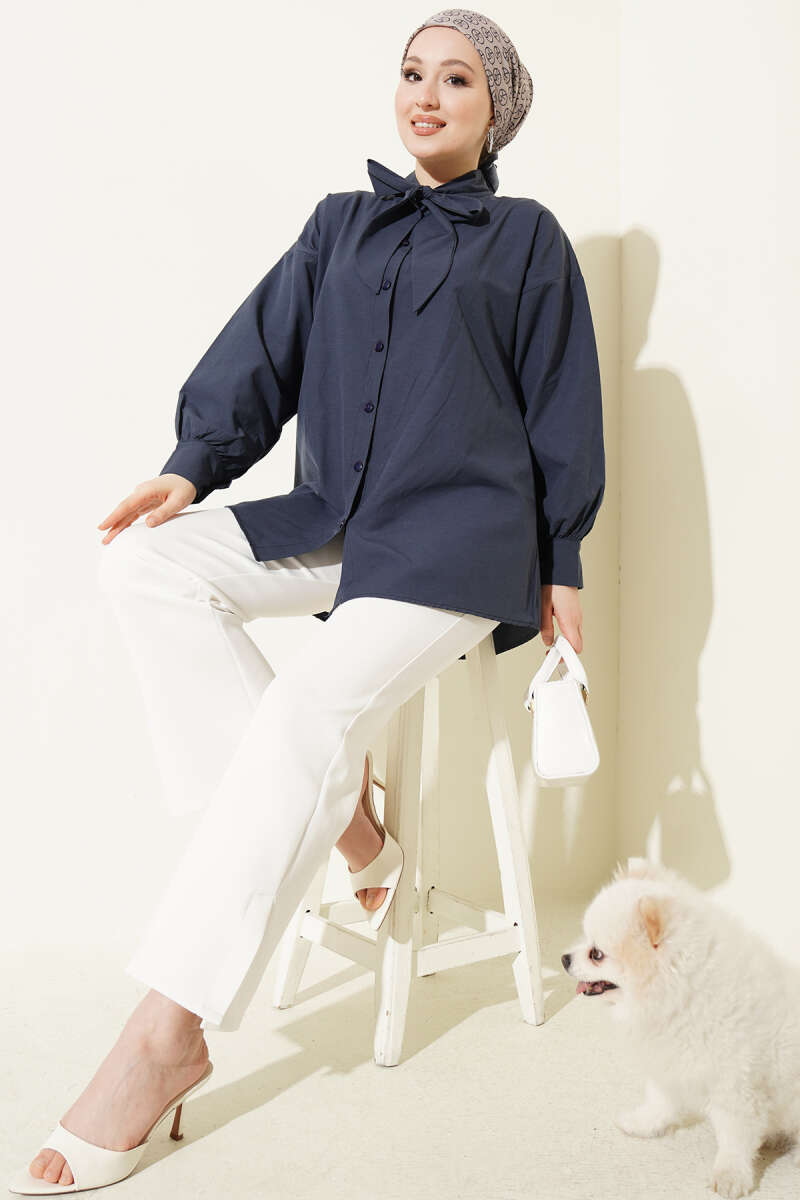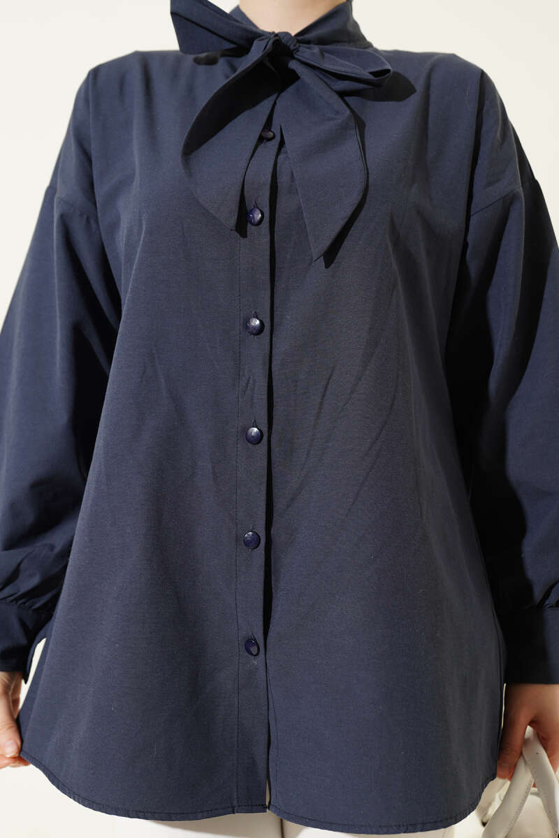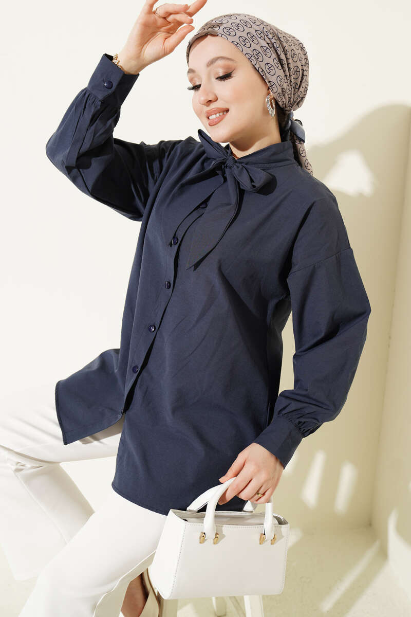 Yaka Bağlama Detaylı Gömlek Lacivert