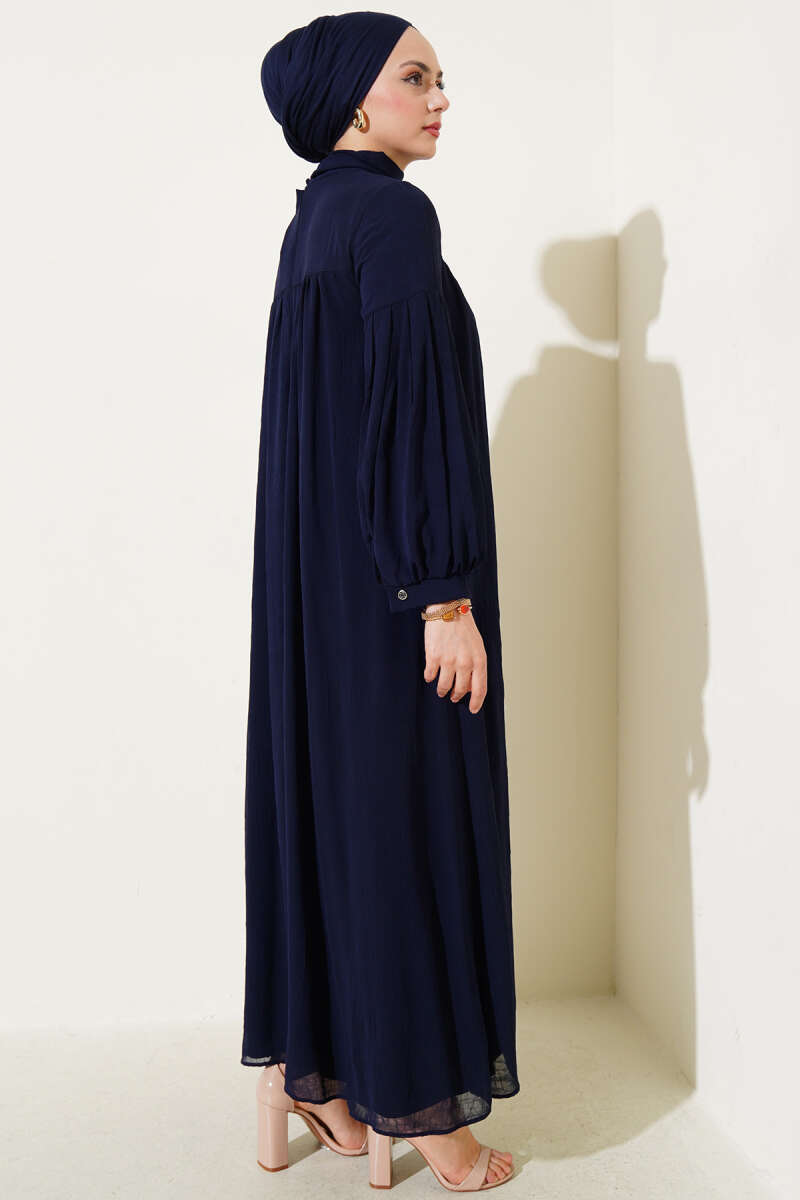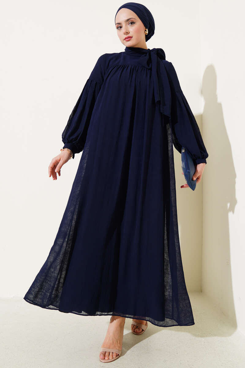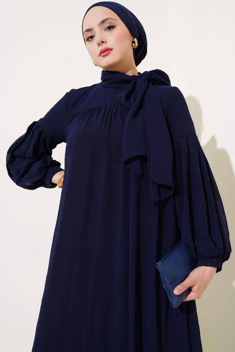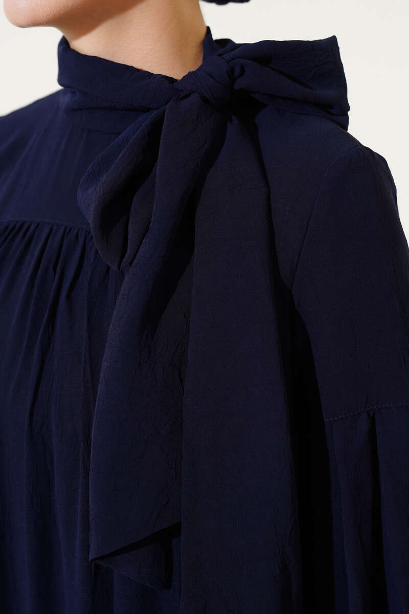 Yaka Bağlama Detaylı Salaş Elbise Lacivert