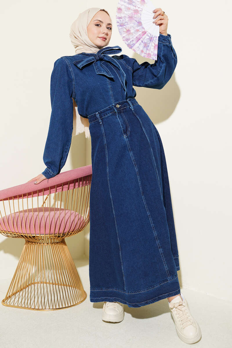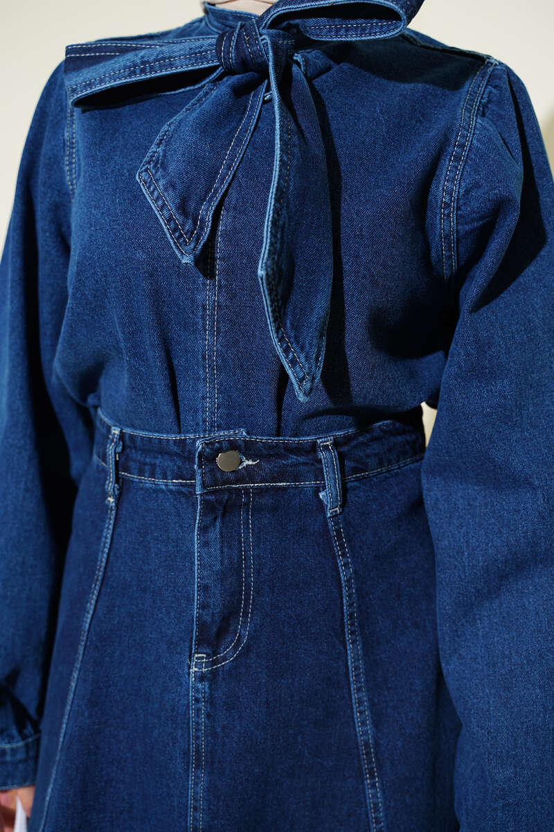 Yaka Bağlamalı Etekli Kot İkili Takım Kot