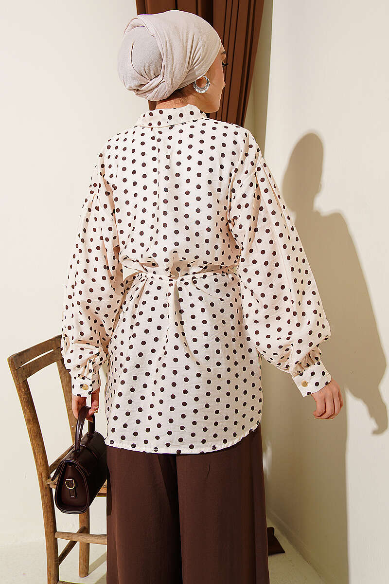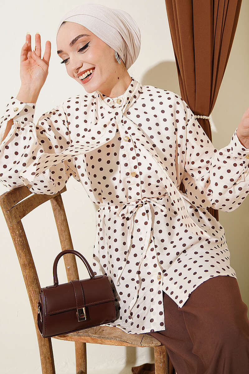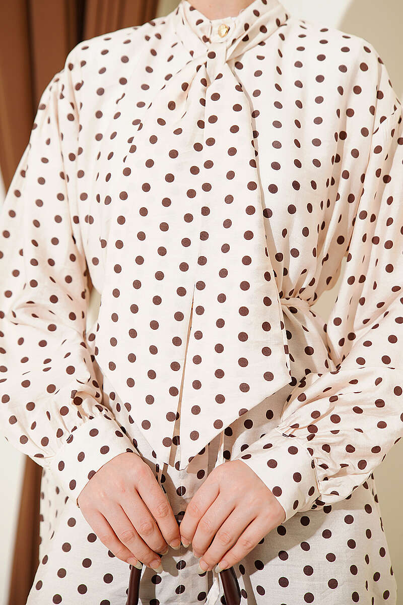 Yaka Bağlamalı Puantiyeli Gömlek Bej