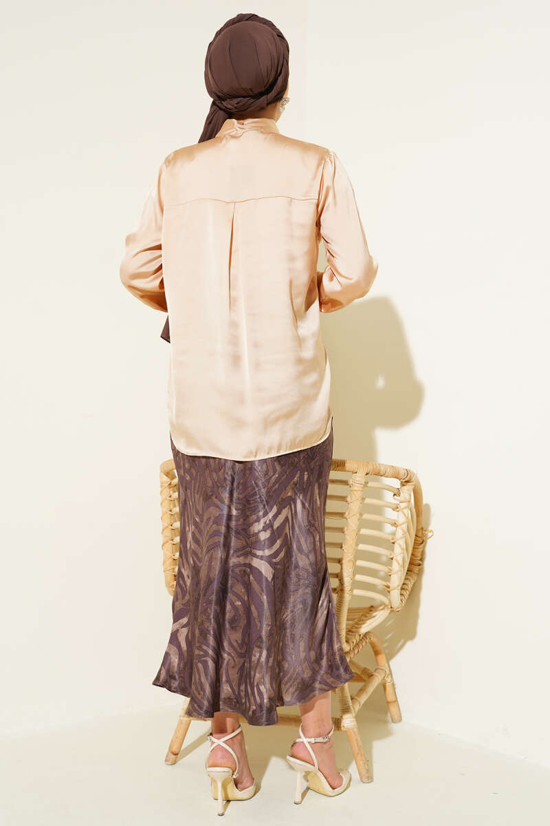 Madonna Yaka Düğmeli Bluz Mürdüm