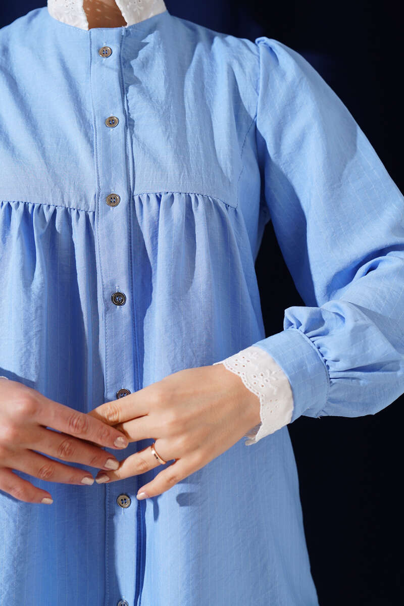 Gizli Düğmeli Bel Kuşaklı Gömlek Bebe Mavi